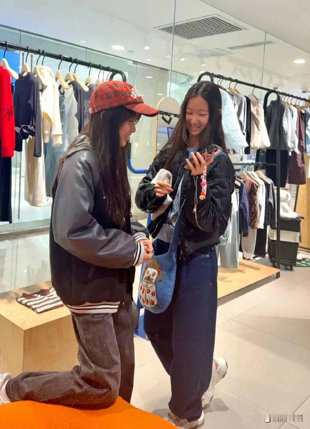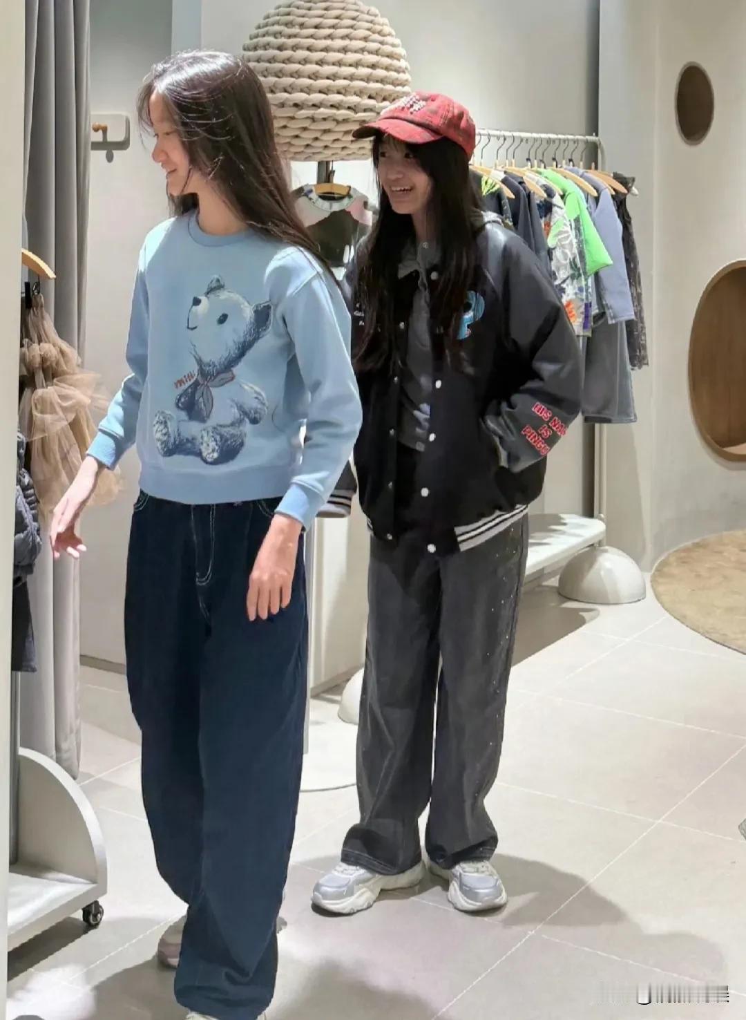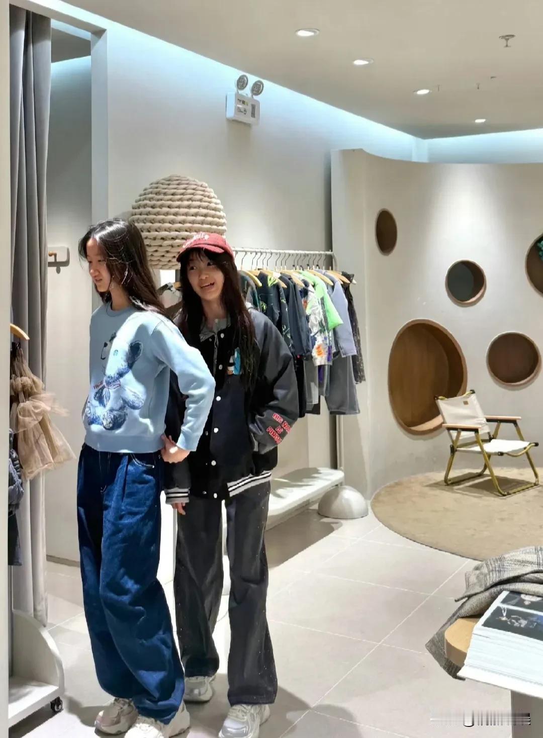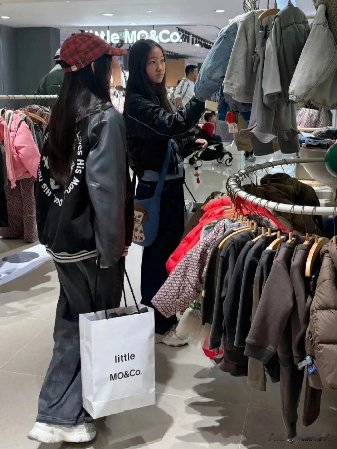 果然啊,原件漂亮复印件就漂亮! 赵子琪带着两个女儿逛服装店,两个女儿已经长大成大