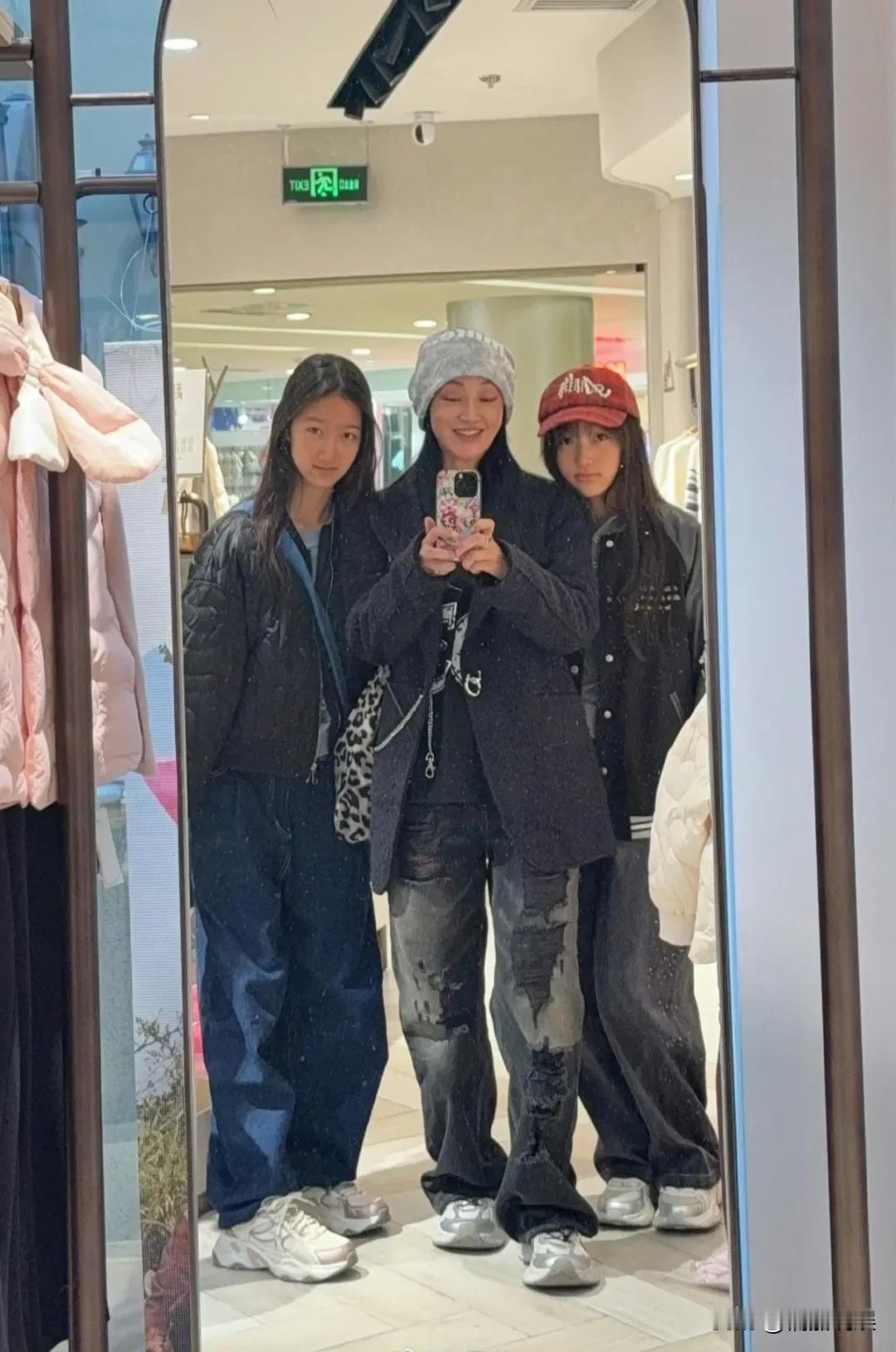 果然啊,原件漂亮复印件就漂亮! 赵子琪带着两个女儿逛服装店,两个女儿已经长大成大姑娘了,长发披肩,身材高挑,身高已经跟妈妈一样高,眉眼和妈妈如出一辙,一样的瓜子脸、长眉凤目! 姐妹俩性子活泼,有说有笑,妈妈赵子琪快五十了,保养得很好,状态很年轻,就母女三人站在一块更像三姐妹!