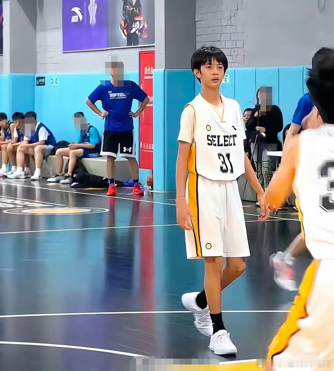 邓超和孙俪现身观看儿子等等打篮球比赛,等等好高啊,身材修长,五官帅气,预定长大后大帅哥一枚了!