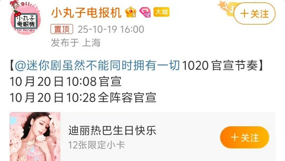 迪丽热巴的新剧《虽然不能同时拥有一切》今天官宣,好事多磨 卫蓝的双面人生[期待][期待][期待]