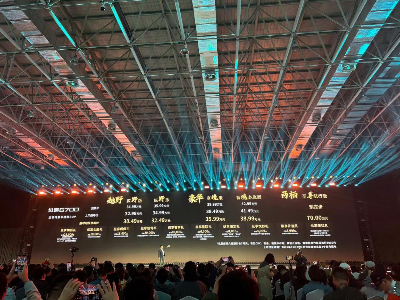纵横G700上市了,一共四个配置,价格32.99-41.49万。100L的油箱,智能三把锁,鲲鹏混动CDM-O的动力,零百加速4.6秒,感觉又是一款可玩性非常高的混动硬派越野车,你们觉得如何?