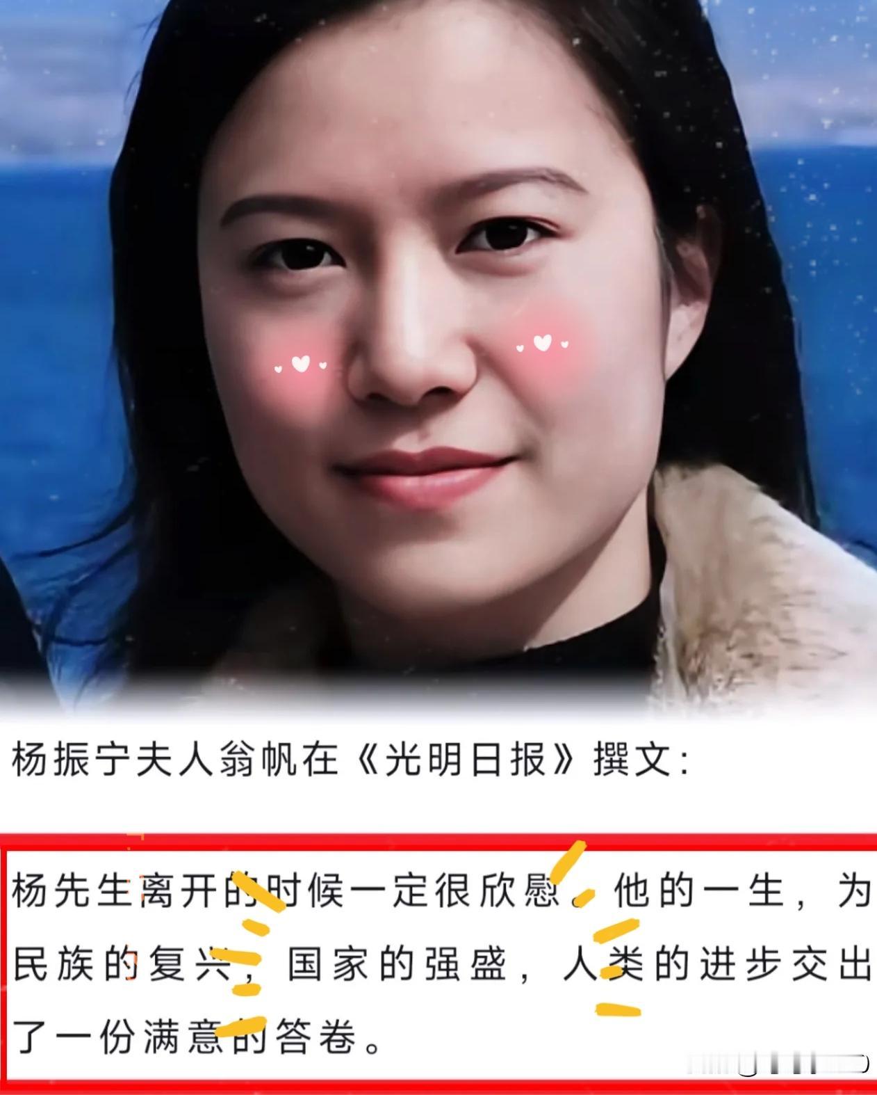 对不起!翁女士, 终究是我肤浅了, 原来他们之间的爱情并不是网上说的那么肤浅和复杂。 以前总觉得跨龄爱恋难登大雅,甚至偷偷揣测过这份感情里的“不纯粹”,直到看见翁女士在《光明日报》里写的那些话,才狠狠打了自己的脸。没有华丽辞藻,没有刻意煽情,字里行间全是对先生的崇拜,一句“交出满意答卷”,把21年的陪伴和敬重全装进去了,比任何悼文都戳心。 哪有什么“不可思议”,不过是我们总用年龄、身份去衡量爱情,却忘了最珍贵的是灵魂相契。21年里,她不仅是陪伴者,更是懂他的人,让顶级科学家能安心搞研究,最后安详离开,这份精神支撑,比任何甜言蜜语都更像爱情该有的样子。 现在才算明白,真正的爱从不是哭天抢地的表演,而是把深情藏在对对方的认可和传承里。你看了他们的故事后,是不是也和我一样,重新相信爱情无关年龄,只关乎灵魂是否同频?评论区说说你的想法~