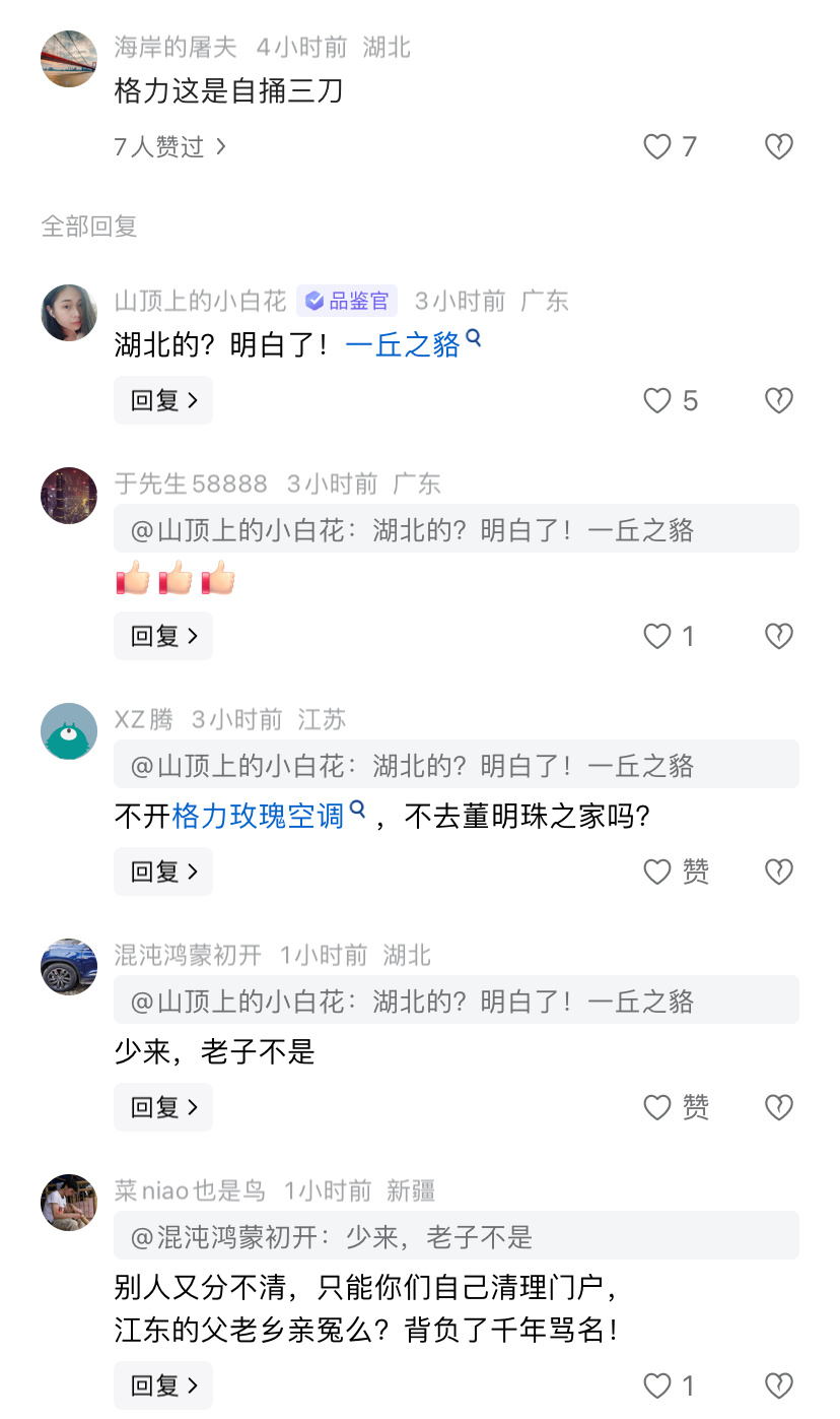 格力高管又开炮了,也没指名道姓,不知道说谁。看评论区,有人说朱磊真爷们,还有人说格力这是自捅三刀。舆论有点两极分化。