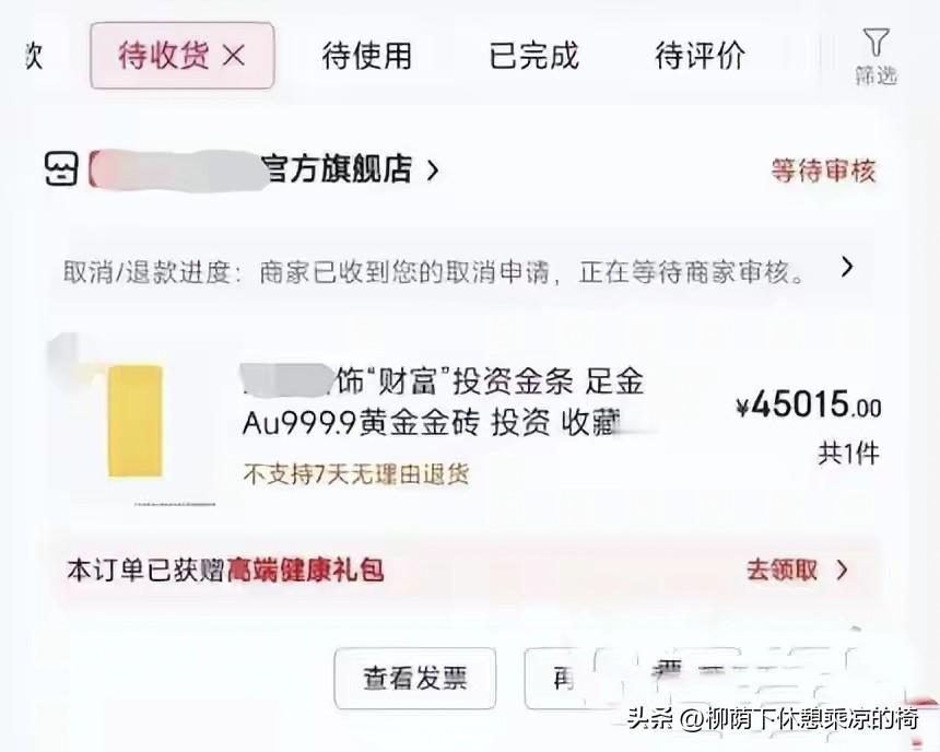 网购50克金条派送中,正逢金条涨价,订单被平台拦截! 妥妥的被平台“玩”了一把!