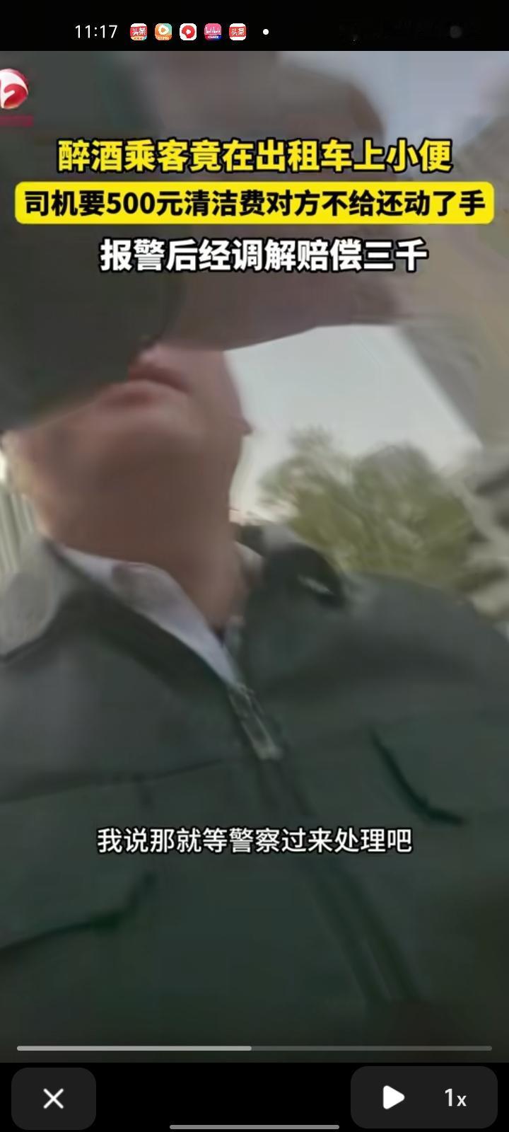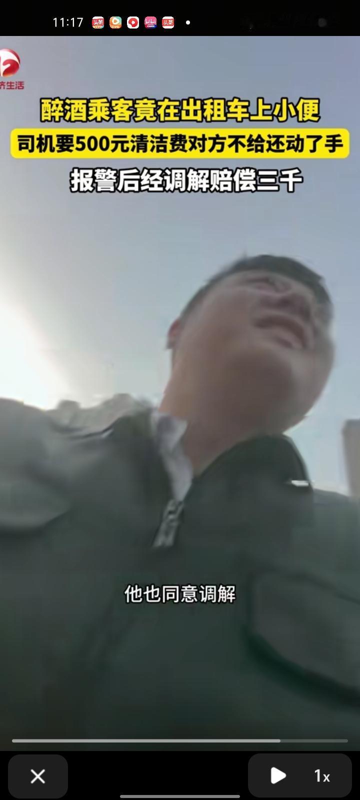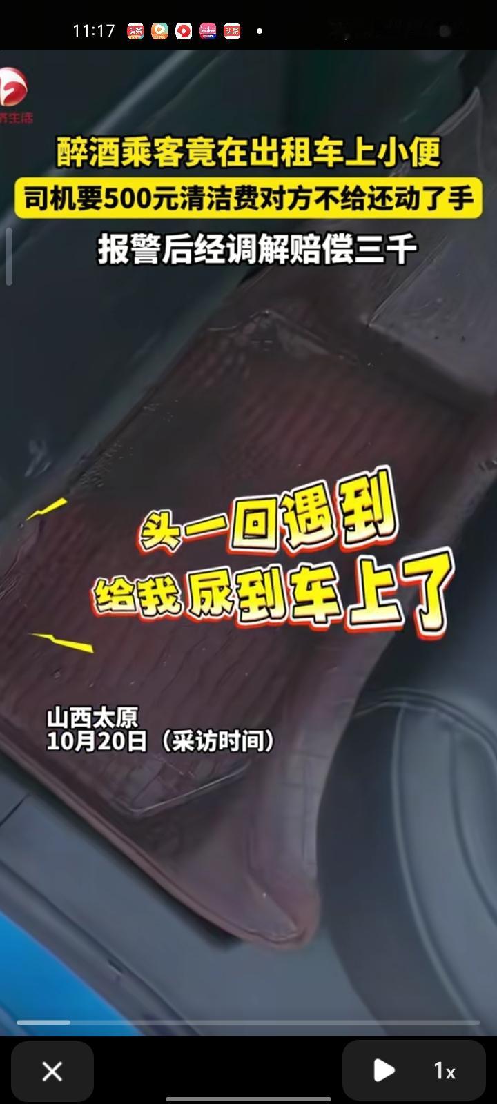 10月19日,山西太原。司机发视频称,醉酒乘客在车上小便,导致车内一股尿骚味,向乘客要500元清洁费然后等警方处理,没想到对方不仅不给钱还动手打人。在警方的调解下,对方赔偿司机3000元。