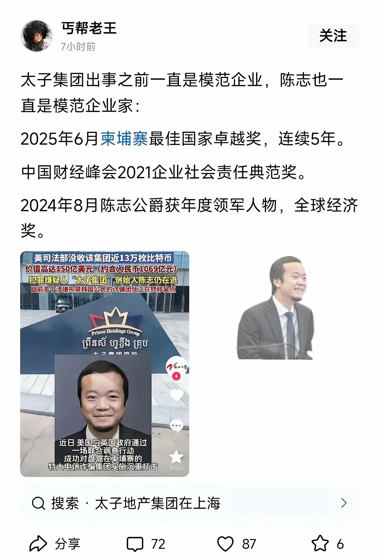 刚查了一下 大家发现没,原来 美方近期突然对太子集团及其实际控制人出手制裁,这一动作迅速引发热议——涉事集团被指长期从事跨国电诈,涉案金额超百亿,受害者遍布全球20多国,若后续证据公开,相关方恐面临全球追责。 但问题在于,单边制裁常因证据不透明、程序争议陷入“雷声大雨点小”的困境,真正的反诈需要证据共享与联合行动,才能让受害者拿到实实在在的正义。 联合国毒罪办亚太负责人加里·刘易斯的一组数据,恰好戳破了单边行动的短板:2023年全球电诈损失超500亿美元,靠单边制裁追回的资金仅占3%;反观多边协作,同期追赃占比直接飙升至28%,差距悬殊。 中国政法大学李居迁教授也指出,若美方此次制裁超出合理管辖范围、滥用“长臂管辖”,不仅违背国际法,更会砸了国际反诈合作的“招牌”。 其实东盟与中国的实践早给出破局思路:去年双方通过联合行动中心共享情报,一口气侦破127起跨国电诈案,抓获3200余人,挽损超45亿元,这才是反诈该有的样子。 对跨国企业来说,这也是一记合规警钟——近年全球因合规缺失被制裁的企业年均增15%,涉案企业光罚款就可能吞掉年营收的10%-20%,跨境经营绝不能踩法律红线。 而对国际社会而言,千万别让“反诈”沦为地缘博弈的工具,毕竟只有攥紧“联合行动”的拳头,才能真正斩断跨国犯罪的链条。