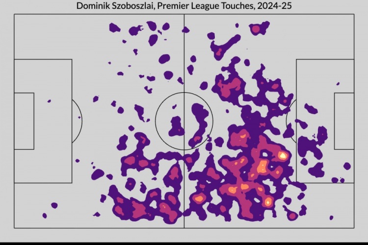 维尔茨的踢球方式加剧了这种隔阂。与上赛季在右路活动的索博斯洛伊不同,维尔茨更像一个传统的攻击型中场,他的触球在球场两侧分布均匀。这导致加克波成为了利物浦本赛季多数危险进攻的核心人物——尽管利物浦整体在进攻三区的触球减少,但加克波的触球却在增加。他现在场均比萨拉赫多触球10次,而上赛季他是利物浦首发中场中触球最少的。