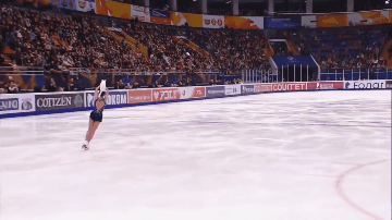 OpenAI官网发布的样片,一名花样滑冰选手在头上戴着一只猫做三轴动作
