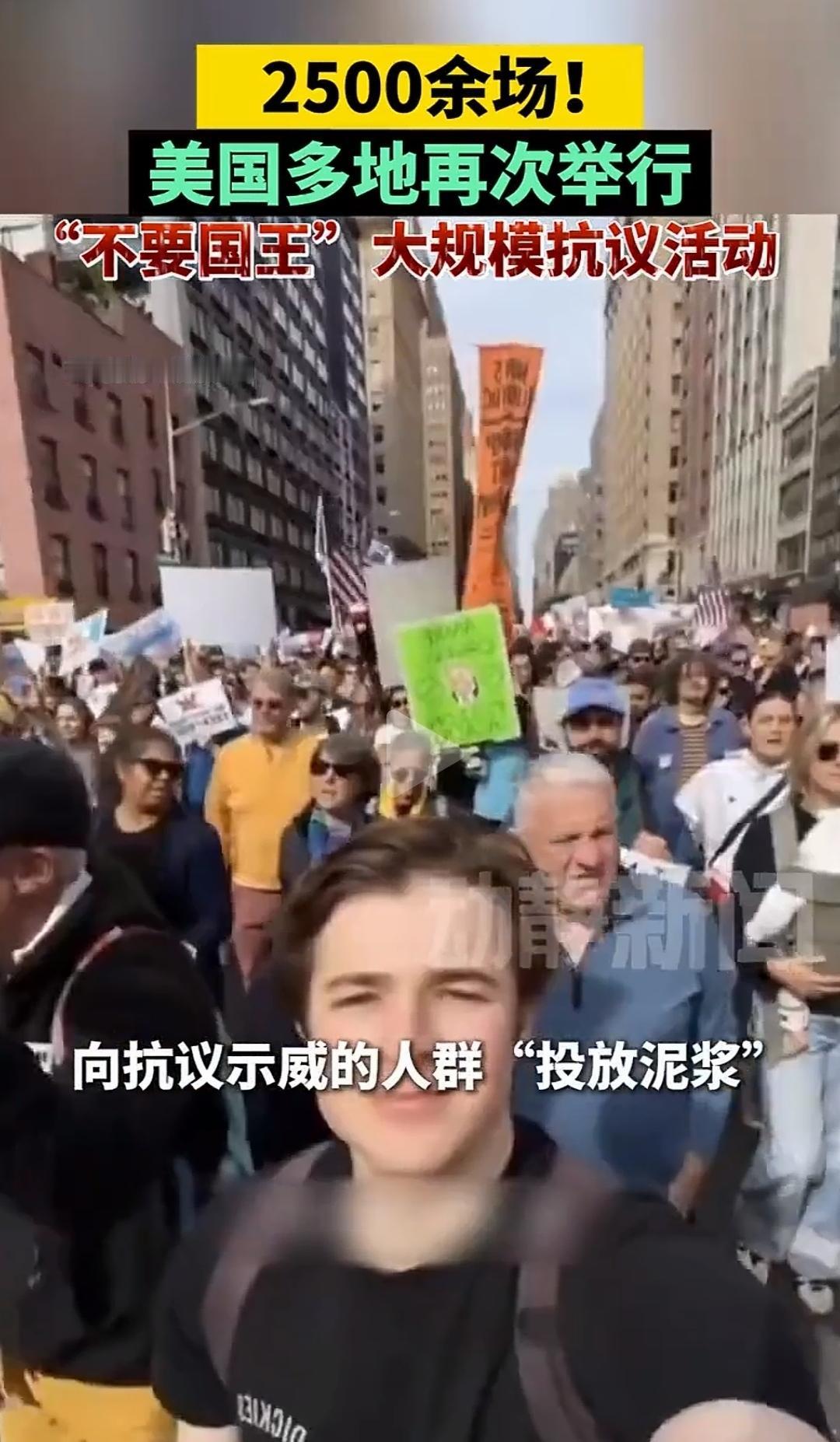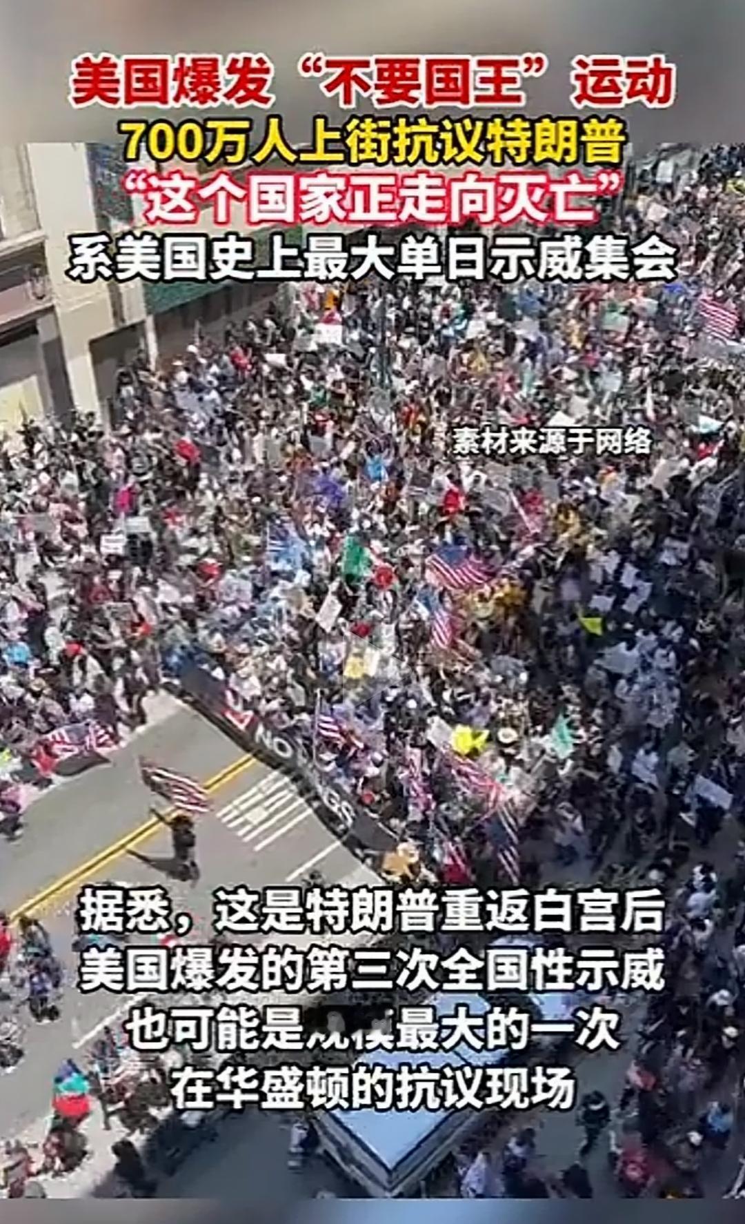 美国爆发大抗议,700万人上街,特朗普用AI视频向抗议人群投粑粑💩💩💩💩