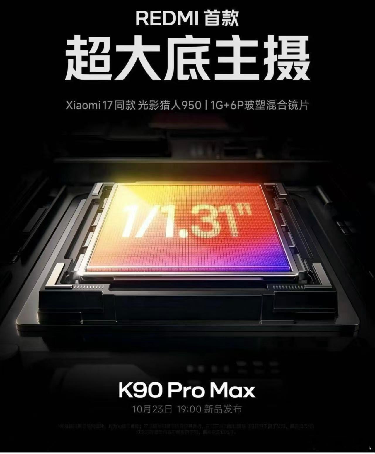 我们熟悉的卢总又回来了,K90系列又要来ko了。这卢总掌管整个小米就是好,直接把小米17的光影猎人950拿过来了。这1/1.3的大底在一众都是1/1.5的竞品中间直接大了一圈,甚至已经比很多母品牌的旗舰标准版都要强了。还有逐片镀膜和1G+6P的玻塑混合镜片。关键是潜望长焦也用上了,上来就是5倍,还支持10倍无损变焦,这次Redmi要发力影像了,今年的子品牌大战也格外热血啊。很期待这次K90 Pro Max的表现。