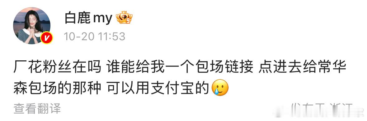 “厂花粉丝在吗 谁能给我一个包场链.接 点进去给常华森包场的那种 可以用zfb的🥲”