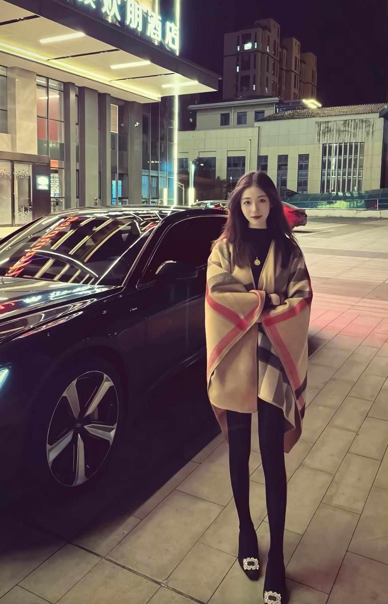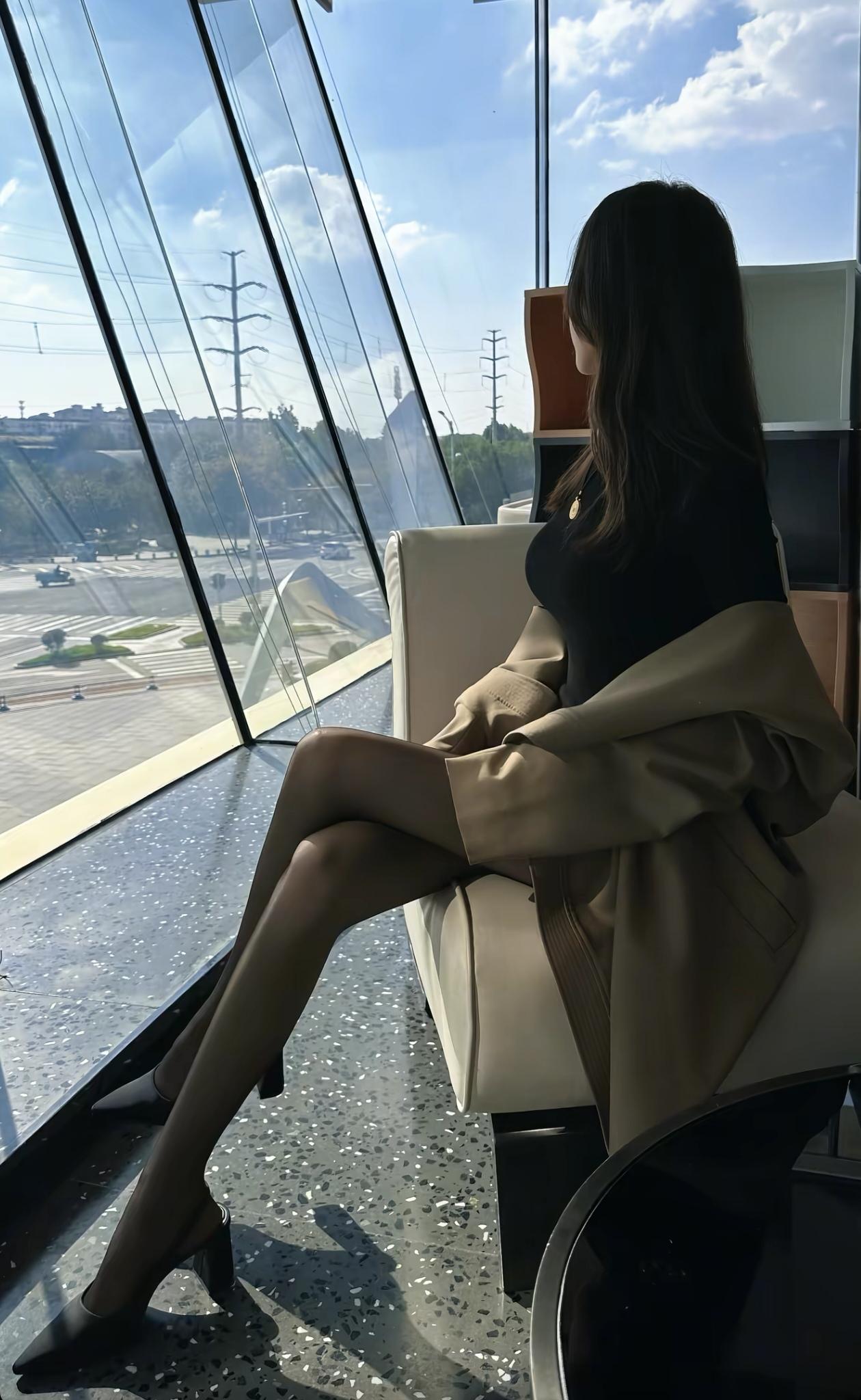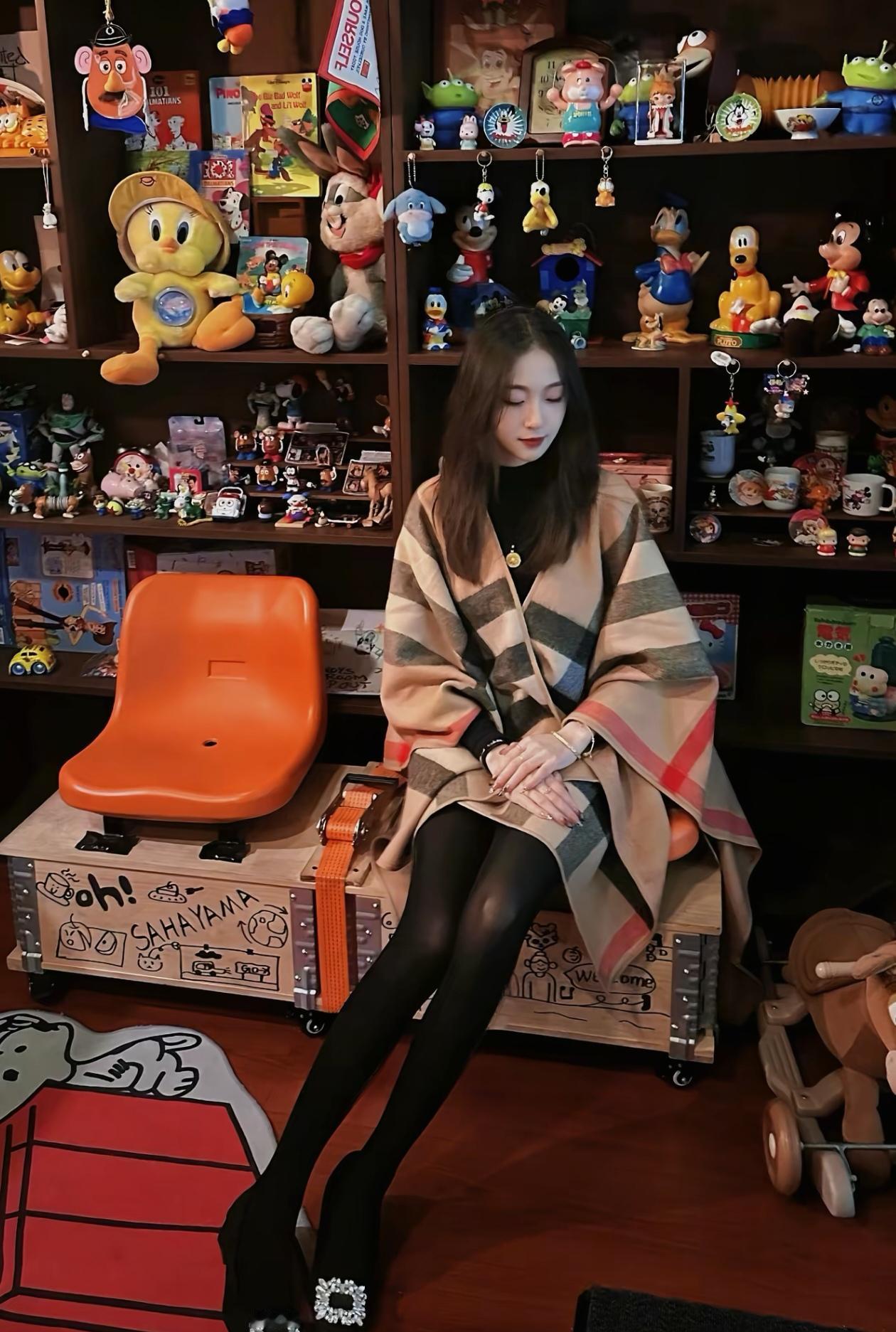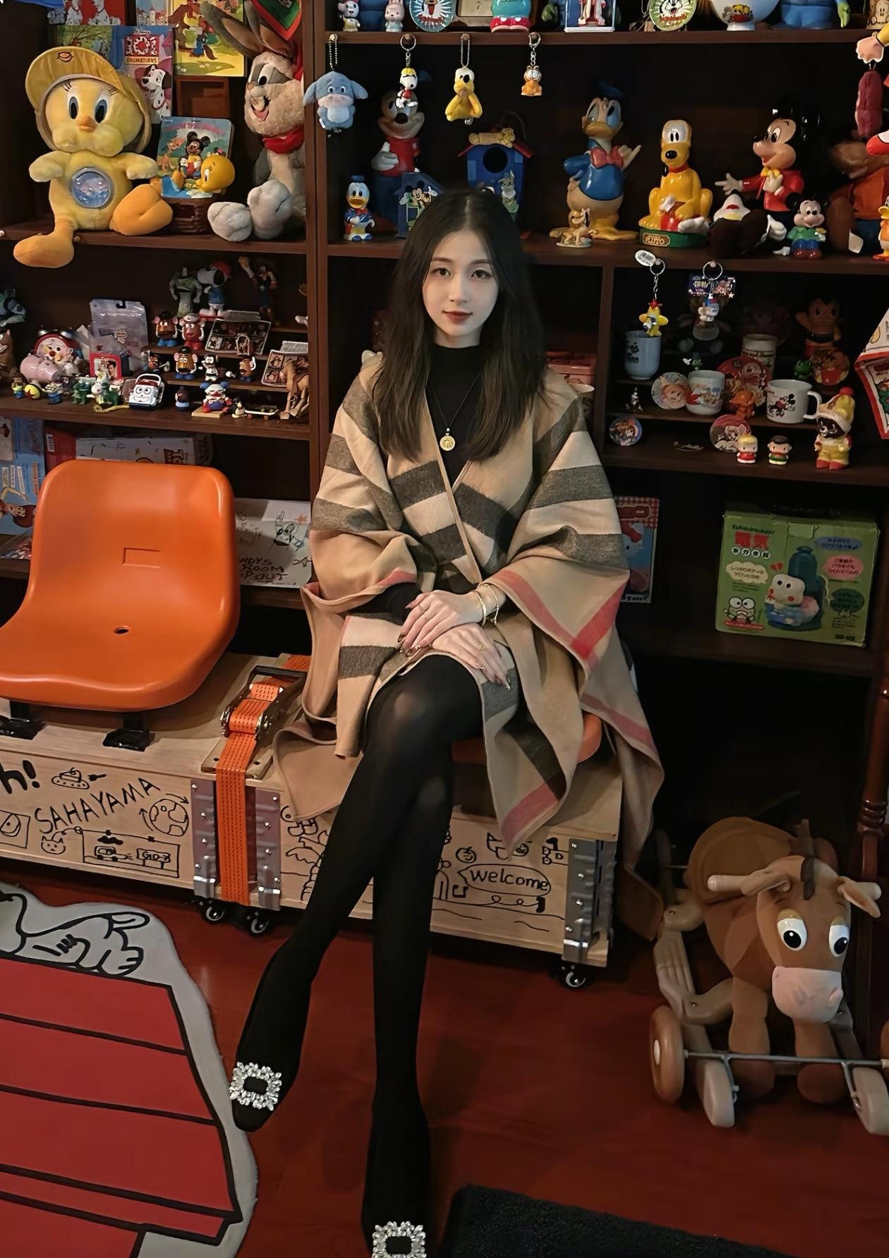 秋日漫步,优雅黑衣,公园里的时尚少女