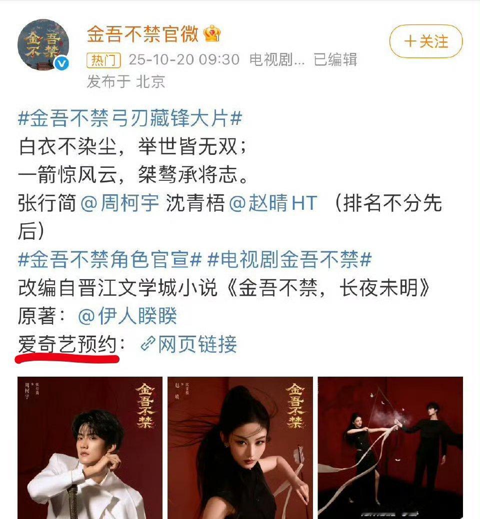 爱奇艺古装剧《金吾不禁》,10月31日开机演员阵容:周柯宇、赵晴、夏之光、王佳怡
