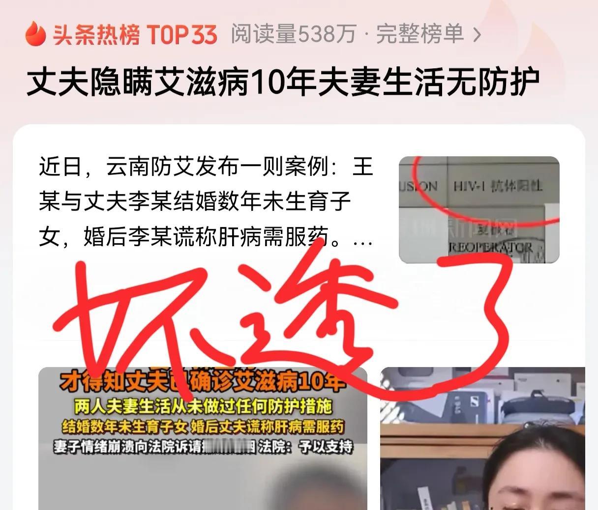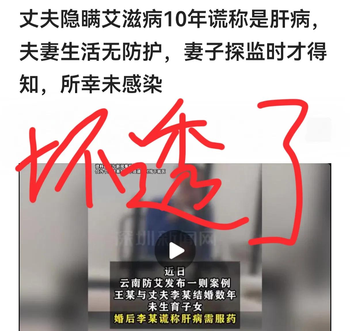 坏透了!隐瞒艾滋病和老婆无防护过夫妻生活,这男的是何种心态呀!那可是自己的亲媳妇