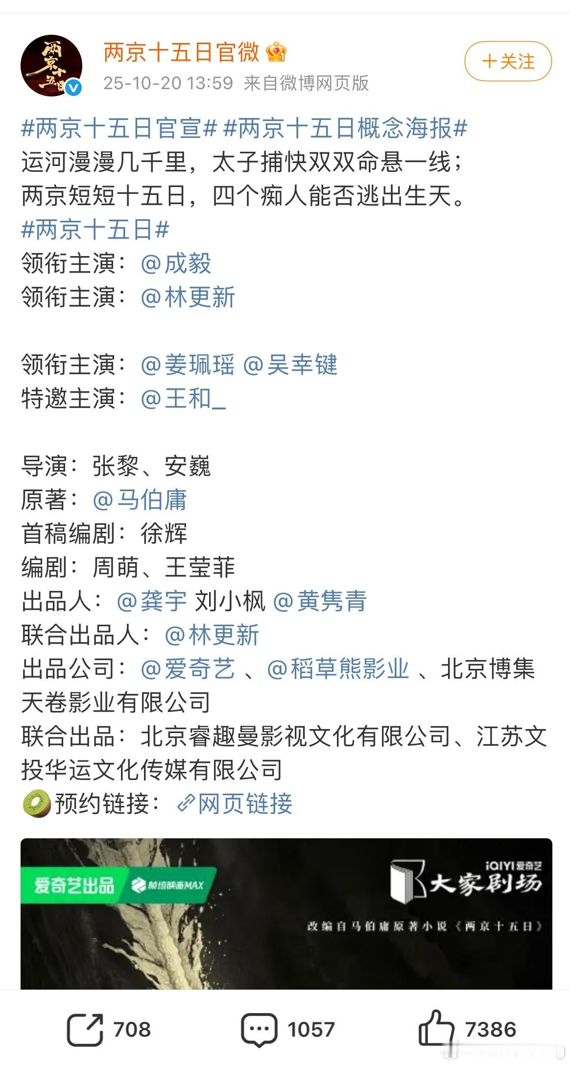 两京十五日官宣成毅 林更新 姜佩瑶 吴幸健等…