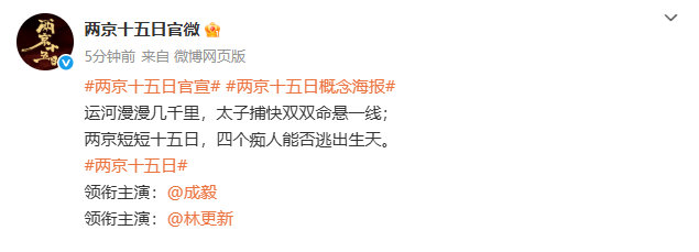 领衔主演成毅林更新,成毅林更新太子捕快双双命悬一线 ,已经官宣,期待住和两位的故事的见面,拍摄顺利呀[打call]