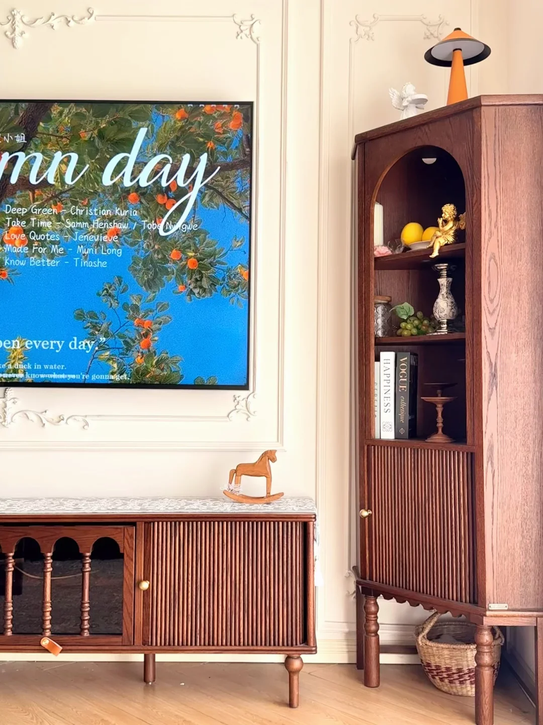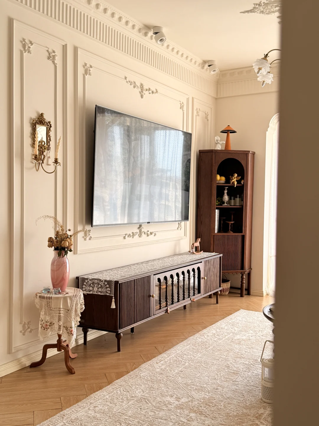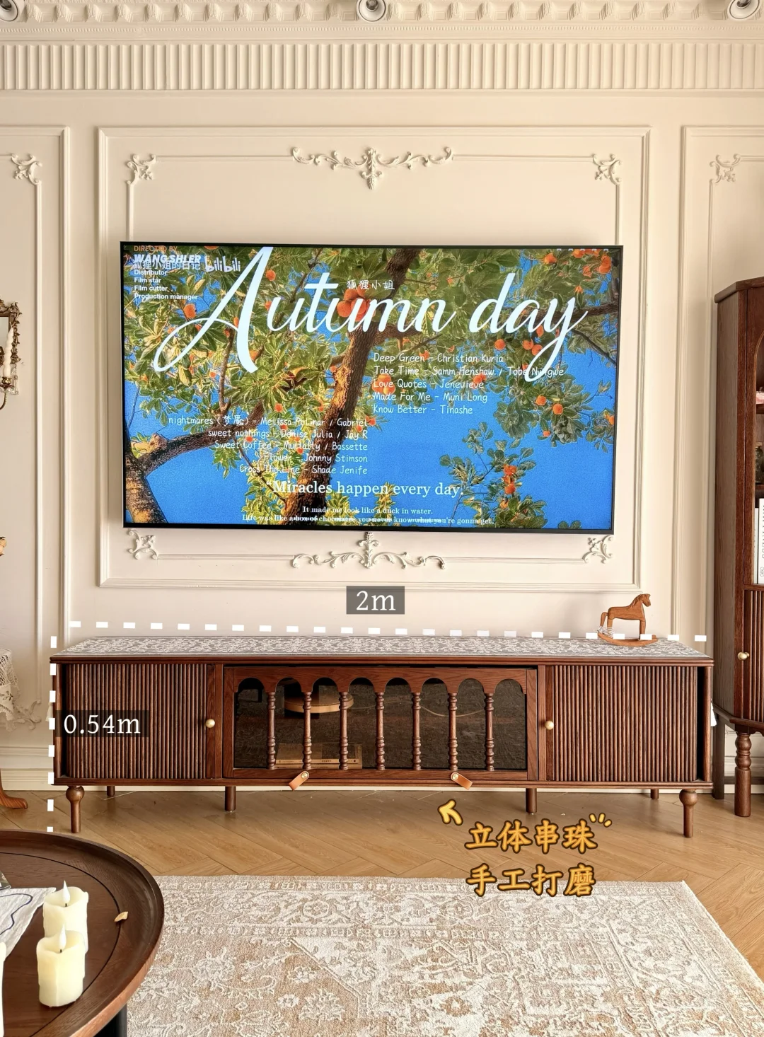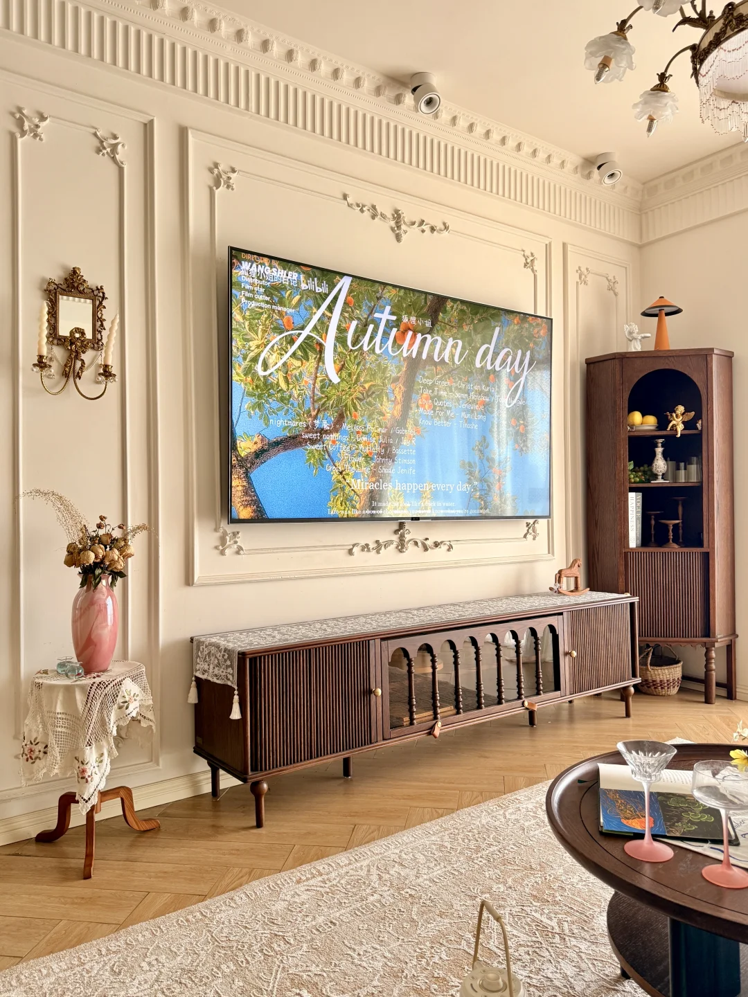 当初选它,就是看中了各各沃的原创设计,真的很懂我们喜欢法式复古的人要什么。而且五年质保、免费送装,网购大件也没踩坑~如果你家也是法式复古风,电视墙在3到5米左右,真心推荐试试这个全咖色的组合!