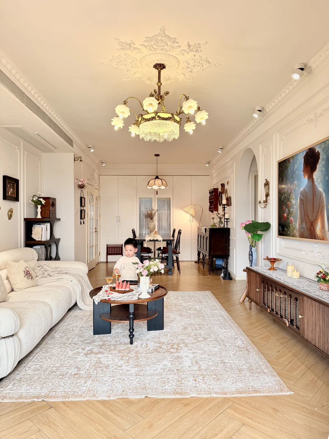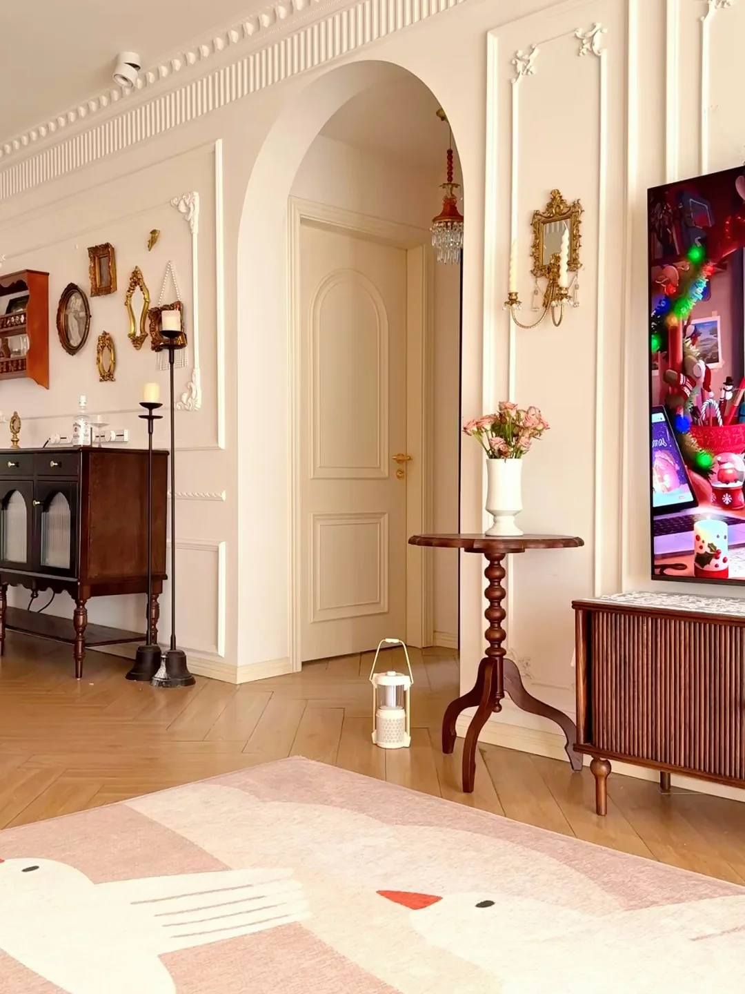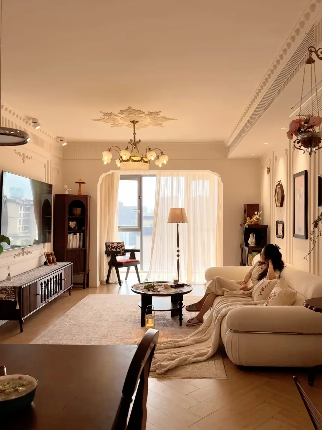 全咖色真的特别衬法式复古的氛围,不用费心搭配其他颜色,和我家的木质家具、米色墙面都融合得很好,整个客厅看起来温馨又统一。