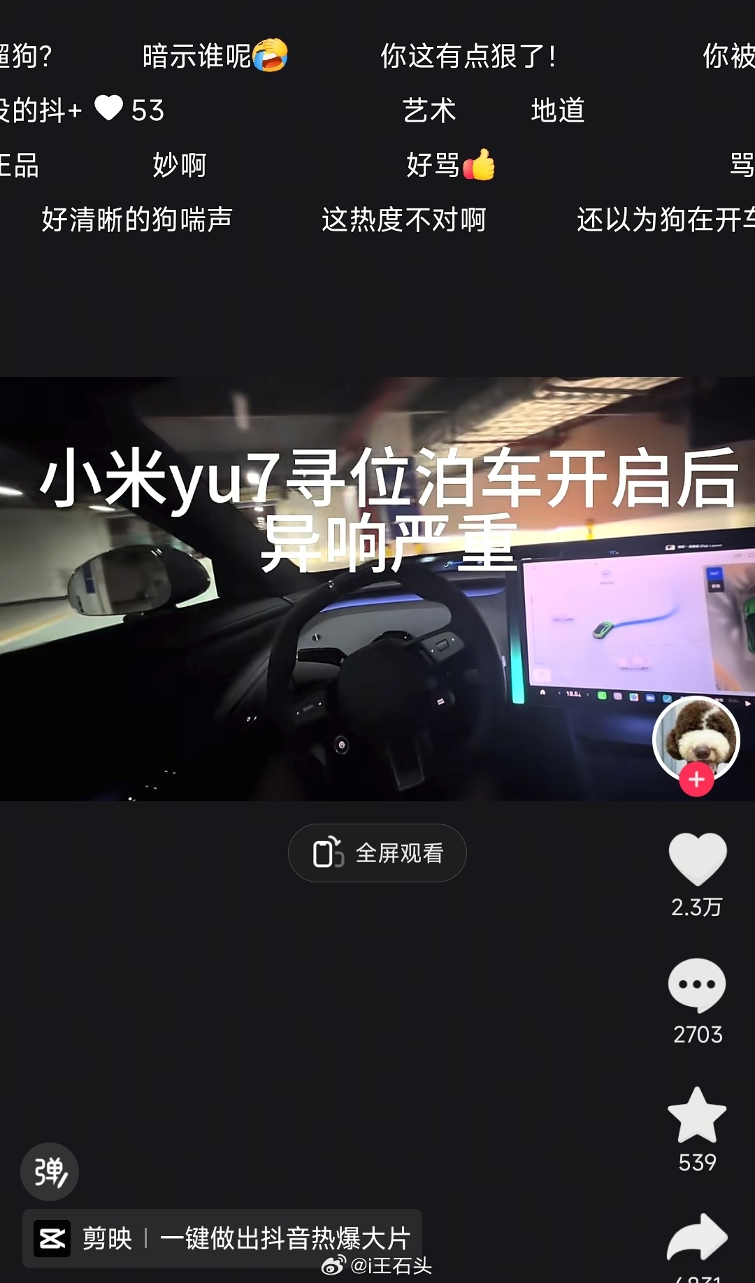 小米YU7寻位泊车开启后异响严重[费解]艺术已成。