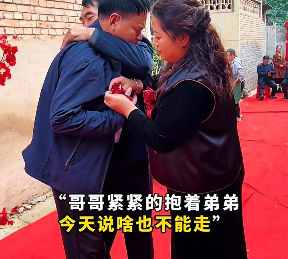 兄弟俩闹矛盾8年没联系,万万没想到,大哥儿子结婚时,弟弟居然不请自来,直接去账房里掏出一沓钱,上号后没有停留,直接转身离开!结果撞见大哥大嫂,大嫂发现后,立马和丈夫追上去拦住弟弟,大哥紧紧抱住弟弟,大嫂拿了一朵花给弟弟戴上,说啥也不让他走!网友:叔叔能来说明在他心里还有这个哥哥! 十月的农家院子里飘着喜糖的甜香,一对新人的婚礼正在举行,亲友们的祝福声中,一个身影悄悄挤了进来。 来人是新郎的二叔,谁都没提前通知他,毕竟他和新郎父亲这对亲兄弟,已经整整八年没说过一句话了。 院里张灯结彩,熟人不少,二叔却没往人群里凑,眼睛直盯着角落的礼金登记处。 他快步走过去,从外套内袋里掏出一沓用红绳捆着的现金,往桌上一放,声音不大却很清楚:“新郎二叔,随礼。” 登记的人抬头愣了一下,刚要开口寒暄,二叔已经签好了名字,转身就往院外走,像是完成了一件早就在心里盘算好的事。 他刚走到院门口,就撞见了闻声赶过来的大哥和大嫂。 空气一下子静了,二叔眼神晃了晃,没说话,脚步也没停,只想赶紧躲开这尴尬的碰面。 “他爸,快追啊!”大嫂推了丈夫一把,自己顺手从旁边花篮里拿了朵胸花,快步跟了上去。 大哥反应过来,几步就追上了弟弟,一下子抱住了自己的亲弟,手上的力气不小,声音却带着颤:“既然来了,就留下喝杯喜酒。” 二叔想挣开,刚动了动胳膊,大嫂已经把那朵胸花别在了他的衣襟,灰蓝色的外套衬着红色的胸花格外显眼。 就这一个简单的动作,二叔紧绷的肩膀慢慢松了下来,大哥看着他胸前的花,再也忍不住,伸手把弟弟搂进了怀里。 八年了,从当年吵翻了天摔门而去,到逢年过节故意绕着走,兄弟俩在同一个小城却活成了陌生人。 可这一抱里,那些没说出口的牵挂,那些藏了多年的愧疚,一下子都涌了上来。 二叔的身体刚开始还有些僵硬,过了几秒,也缓缓抬起手,拍了拍大哥的后背。 旁边的大嫂看着这一幕,用围裙擦了擦眼角,笑着说:“这下好了,一家人总算凑齐了。” 周围几个看热闹的亲戚也红了眼,纷纷上前拉着二叔往院里走。 后来亲友们闲聊才说,这八年里,兄弟俩都偷偷打听着对方的消息,只是两个大男人,谁都拉不下脸先开口。 说到底,家人之间哪有什么解不开的疙瘩。 二叔没被邀请却主动赶来是低头,大哥放下多年的别扭追出去是珍惜,大嫂那朵及时递上的胸花,更是给了两个人台阶。 这低头从来不是输,而是把藏在心里的亲情,好好捧了出来。 那天的婚礼,新人自然是主角,但院门口那匆匆一抱,却成了所有亲友心里,最暖的一段记忆。