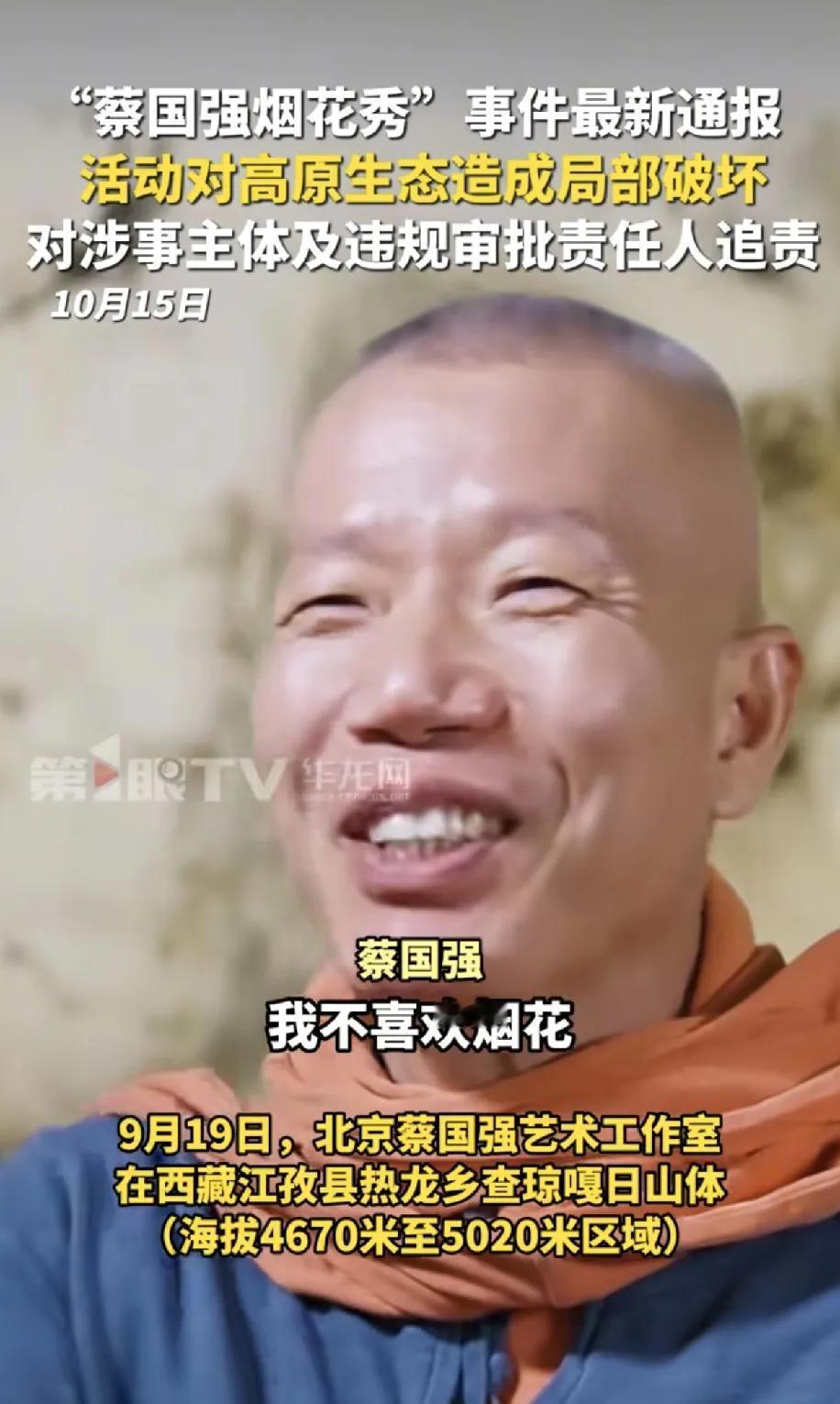 蔡国强说自己根本就不喜欢烟花,他喜欢的是爆炸,因为爆炸纯粹,这是什么逻辑,就是因为自己觉得好玩吗?然后打着艺术的口号,跑到喜马拉雅山的放烟花,如果真喜欢爆炸,那他怎么不去加沙,那里爆炸更纯粹,也更喜欢蔡国强,但是就这么个人,居然一个县的领导班子还有一个商业品牌陪着他疯。