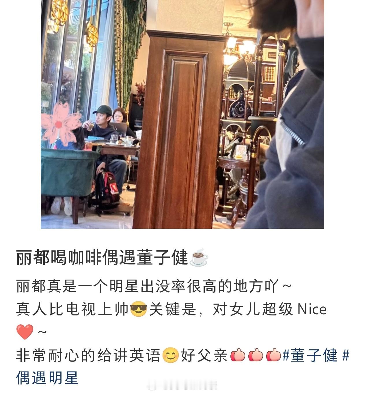 董子健带女儿喝下午茶董子健耐心的给女儿讲英语 董子健带女儿喝下午茶,耐心的给女儿讲英语,好父亲一个