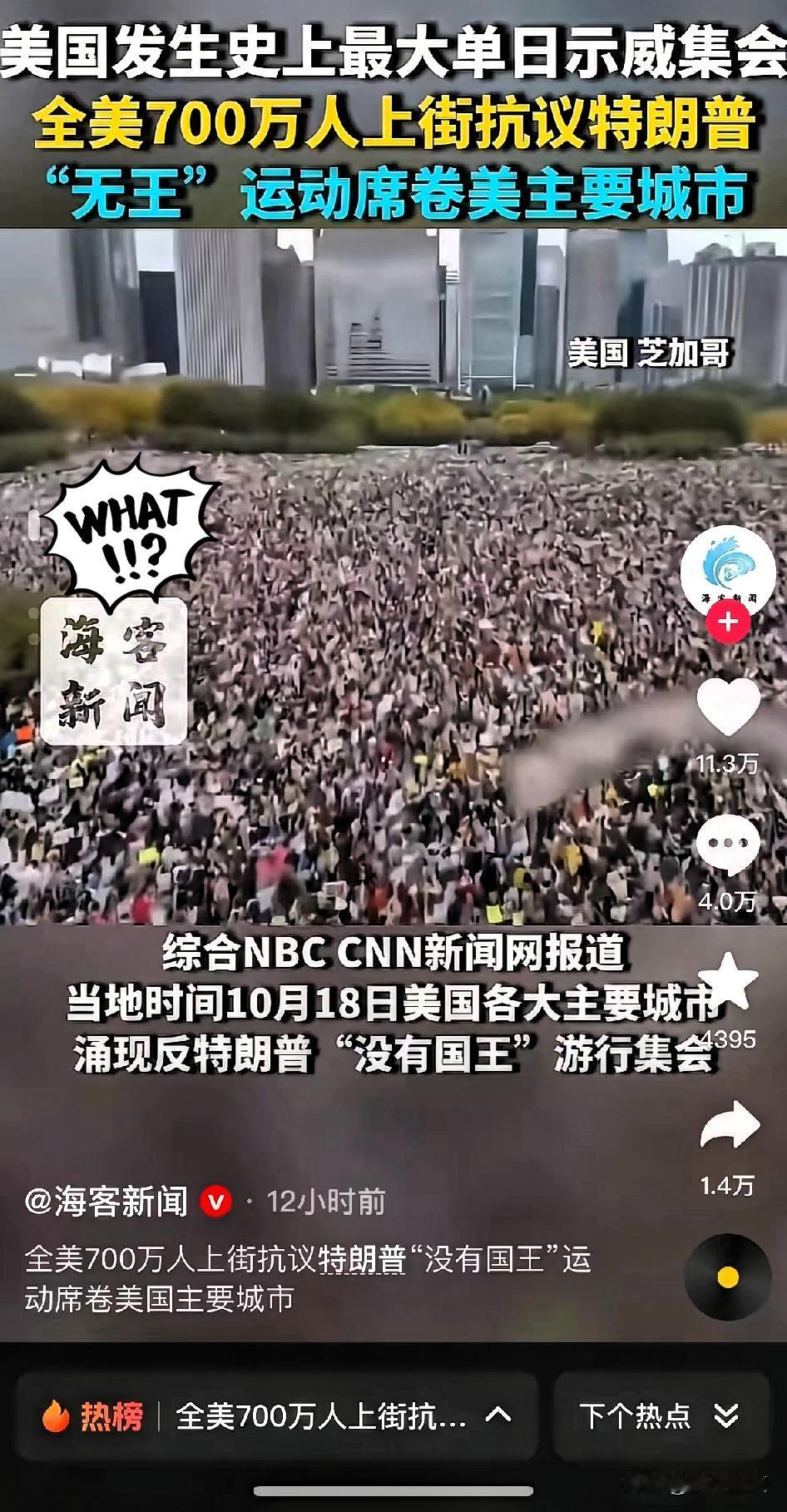 130万美军不发工资!700万美国人街头游行!美国都乱成一锅粥了,内斗白热化,自己内部的事情都处理不过来,有什么资格跟华夏上桌谈判? 曾经不可一世的美利坚,如今彻底陷入了自我制造的混乱漩涡。政府停摆长达三周,两党仍在互相撕扯,短短三周内重启政府的提案被否决了九次。政治精英们忙着玩权力游戏,却让保家卫国的军人沦为牺牲品。 美军官兵正面临史上首次大规模停薪,原定10月15日起他们的工资就将断供。这些穿着军装的爱国者,不得不为了养家糊口在食物救济站前排起长龙。一位海军技术人员的妻子卡迪·弗雷泽无奈地说:“我们每两周发一次工资。如果没有领到,那真正严重的困境就开始了。” 军饷的拖欠不仅折磨着军人家庭,更重创了军事基地周边的经济。弗吉尼亚州汉普顿罗兹的一家餐厅经营者马里森·科拉莱斯忧心忡忡地看着空荡荡的座位:“如果没有任何客户进来,我们的生意如何才能做下去?”经济学家估计,仅这个地方就可能因长期停摆损失10亿美元。 绝望之中,特朗普政府竟挖东墙补西墙,动用国防研发资金来支付军饷。这种拆了未来补现在的短视行为,暴露了美国政治体制已病入膏肓。 更令人发指的是,白宫趁着停摆混乱,竟计划解雇超万名联邦雇员。特朗普赤裸裸地宣称,裁员将主要针对“民主党相关机构”。幸好联邦法官苏珊·伊尔斯顿及时出手,签发临时限制令直指这一行为的非法性与政治动机。 数百万美国民众再也无法忍受政府的倒行逆施。10月18日,从纽约到洛杉矶,从华盛顿到芝加哥,全美2700多个城镇同时爆发“不要国王”大规模示威。组织者称参与人数高达数百万,他们高举“宪法不是可有可无”、“拒绝独裁者”的标语,向特朗普政府发出震耳欲聋的抗议。 纽约街头,参议院民主党领袖查克·舒默走在十万抗议者中间。曼哈顿居民戴维·卡波尼亚对记者痛陈:“美国农产品卖不出去,农民快破产了,物价也飞涨,数十亿本来用于医疗补助和联邦医疗保险的款项被挪作他用……一切都太糟糕了。” 共和党人对民众的愤怒不屑一顾,众议院议长迈克·约翰逊甚至傲慢地将这场和平示威称为“仇恨美国的集会”。这种将民众正当诉求污名化的做法,彻底暴露了当权者与民意的严重脱节。 美国政府停摆三周来,空中交通管制压力加剧,博物馆动物园纷纷关闭,关键的疾病控制与预防中心核心团队被裁撤。这些乱象不过是冰山一角,据国会预算办公室估算,2018年至2019年那次35天的停摆就让美国损失了30亿美元国内生产总值。 财政部长斯科特·贝森特不得不承认,停摆已开始“影响实体经济”。然而两党领袖仍拒绝妥协,众议院议长约翰逊威胁在民主党让步前“不会进行谈判”。 美国政府功能瘫痪、社会严重撕裂、经济前景黯淡,这样一个连自己家务事都理不清的国家,还有什么底气对其他国家指手画脚?当美国大兵领不到工资、普通民众被迫上街抗议、政府机构陷入停摆时,那些傲慢的政客应该先扫清自家门前雪,再来对他国事务说三道四。 各位读者你们怎么看?欢迎在评论区讨论。