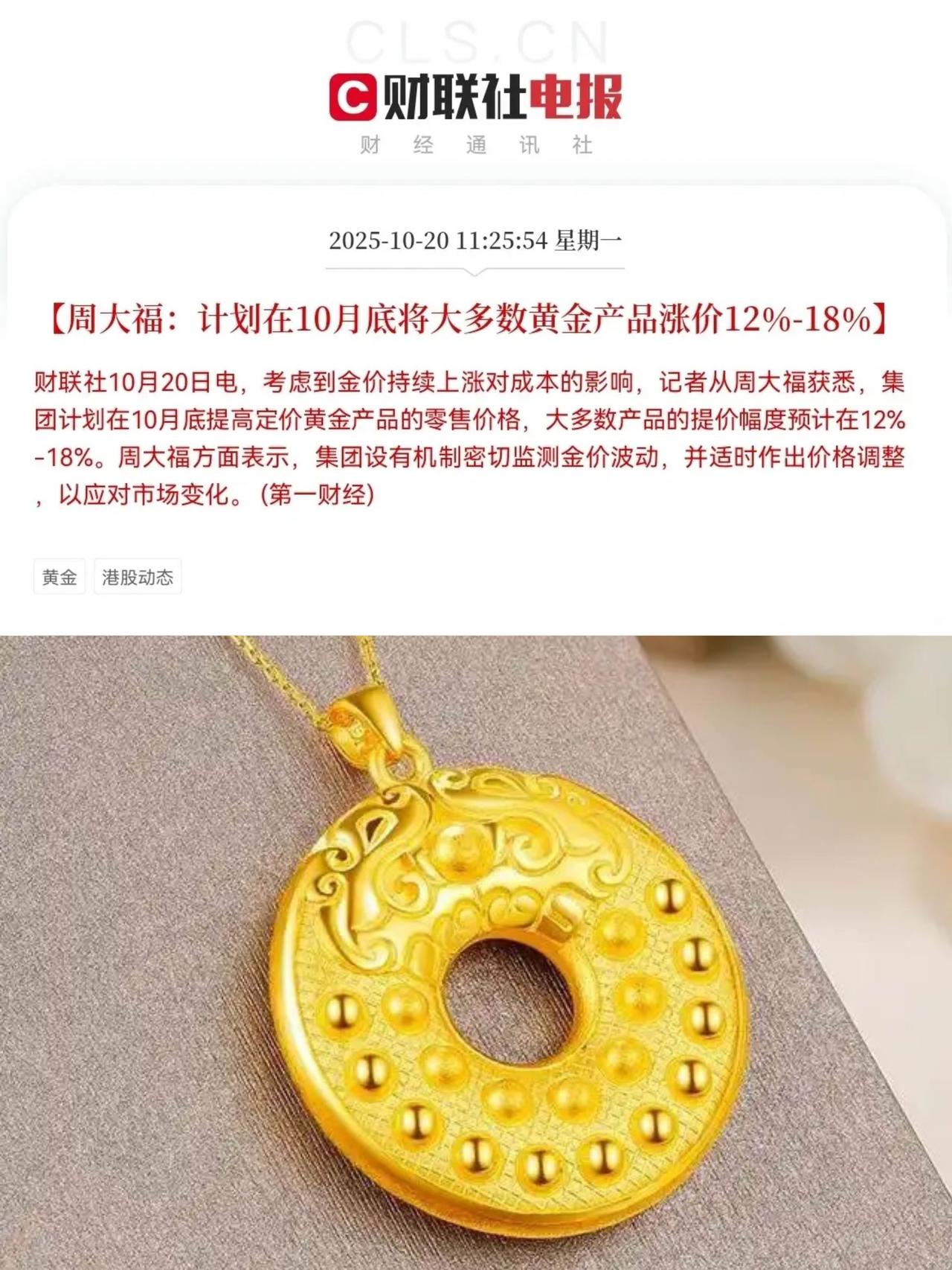 就在刚刚! 周大福涨价的消息炸锅了,这波操作根本不是简单的调价,而是给所有普通人递了张"黄金趋势说明书"! 别被网上瞎传的1262元/克唬住,真实情况是周大福一口价黄金已经涨了10%-15%,现在门店价格早超800元/克了。这背后是国际金价在撑腰,伦敦金都摸到4378美元/盎司了,高盛、美国银行更是喊出未来两年奔5000美元的目标。 但别光盯着金镯子,现在买金饰反而不划算,周大福同店销售都降了20%多。真正的机会藏在调整里——黄金股最近跌了不少,但美联储降息、央行不停买金这两大支撑没断,回调其实是在给机会。 与其追涨金饰当"接盘侠",不如看懂这波趋势。那些说黄金见顶的都是吓唬人,长期的逻辑硬得很。你们觉得接下来是金饰先破千,还是黄金股先反弹?评论区聊聊!