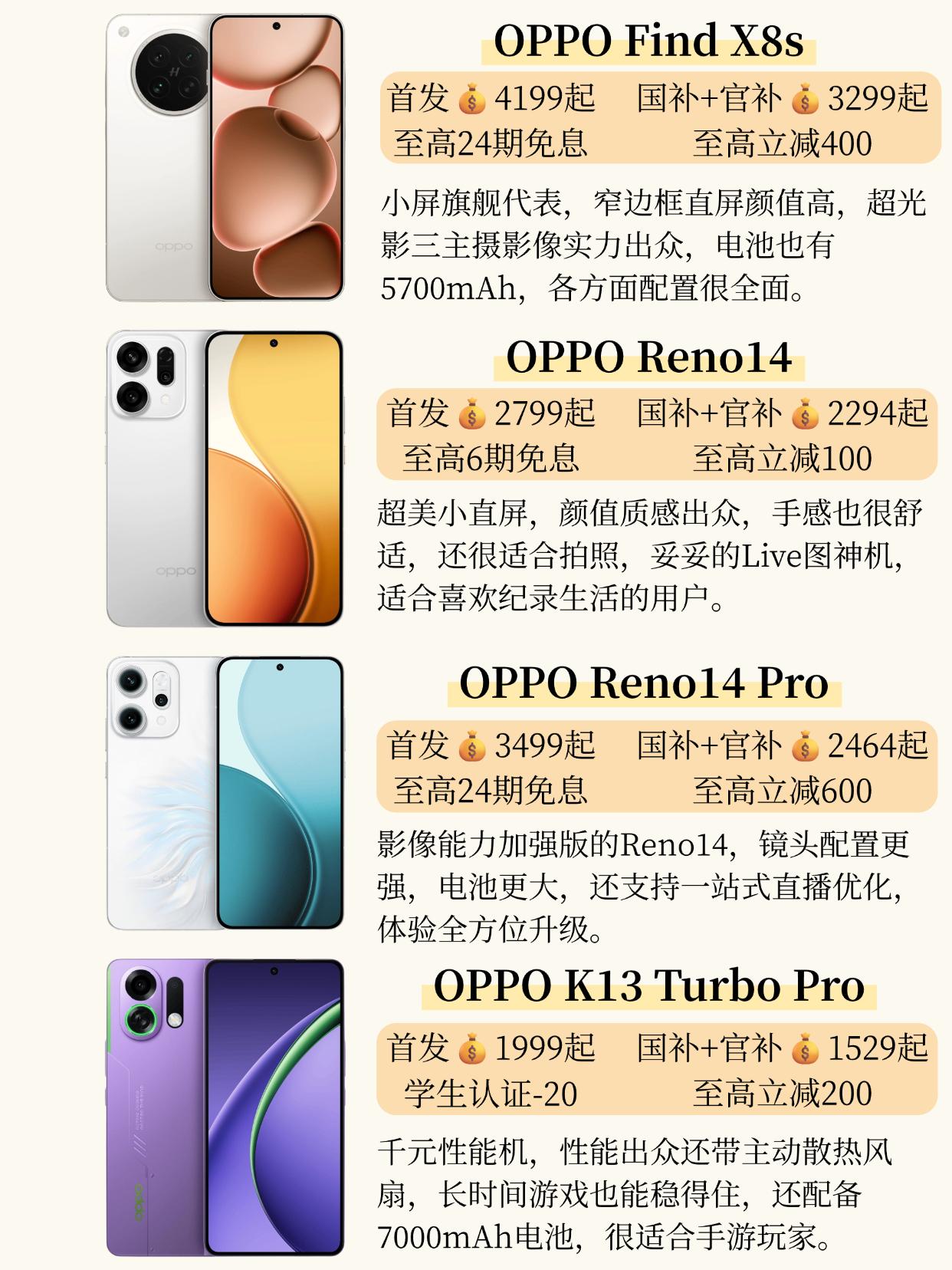 21个OPPO手机技巧汇总!你知道几个? 🙋♀️99%的用户不知道,OPPO手机居然还有这么多隐藏技巧! 学会了用机效率大幅提升,建议马住🌟从基础操作到影像技巧,还有各类隐藏菜单,教程一步到位,你知道哪些呢? 用过的都知道,OPPO手机确实有很多实用的功能,拍照也不错,最近也有不少宝子想趁双十一入坑OPPO,这里也帮大家盘点了四款大幅优惠的机型,入手性价比超高! 想入手旗舰手机的可以看OPPO Find X8s,各方面配置都是旗舰级别的,全方位体验拉满。想要2k价位左右买拍照好的手机,就选OPPO Reno14,拍照强颜值还很高。 预算高一点的也可以考虑OPPO Reno14 Pro,是标准版的全面加强版,还很适合主播。喜欢玩手游,追求性价比的可以看OPPO K13 Turbo Pro,主动散热风扇性能拉满,游戏体验不掉线