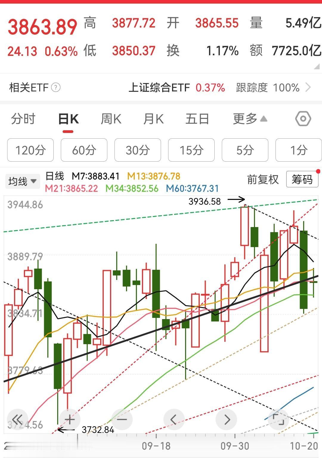 回天乏力,大盘将开启瀑布式下跌? 今天上午,我说今天大盘的关键点位是3869点,但是最后没有收到3869点上面,今天上证指数只是3863.89点,那么没有达到我预期的目标,这样上证指数日线已经二天在加粗的黑色上升趋势线的下面了。一般来说,三天确认,但是在我看来,基本上可以确认黑色的上升趋势线应该是保不住了,那么上证指数将开启真正的下跌,换句话说,这儿的震荡整理行情结束,上证指数方向选择往下面。与其他各大指数一起回落了。 我们可以先来看一看上证指数日线的这一条黑线上升趋势线。第一次回落是当天就收回,以后每一次跌破后第二天就收回,但是今天是上周五破位,今天又在这一条黑线上升趋势线的下面。 再我们以34日来看一看各大指数,现在上证指数日线还在34日均线上面,但是今天深成指二创都在34日均线下面了,其中深成指与创业板反抽34日均线回落。 今天的科创板与北证50最低破了上周五的低点,他们是不是有指引作用? 今天上午大盘资金还有少量纯流入,但是下午是流出,更要命的是今天即使拉升,即使上午拉升,没有放量,震荡整理更是缩量,最后缩量2031亿,成交量只有17513亿了。 今天大盘回落,但是以后板块是不断拉升的,假如银行板块没有拉升,那么上证指数更加难看。 我觉得在现在的位置还是小心再小心。只有指数大跌,到关键点位,才可以短线做几天。 个人看盘与思考,不能构成你的投资建议。