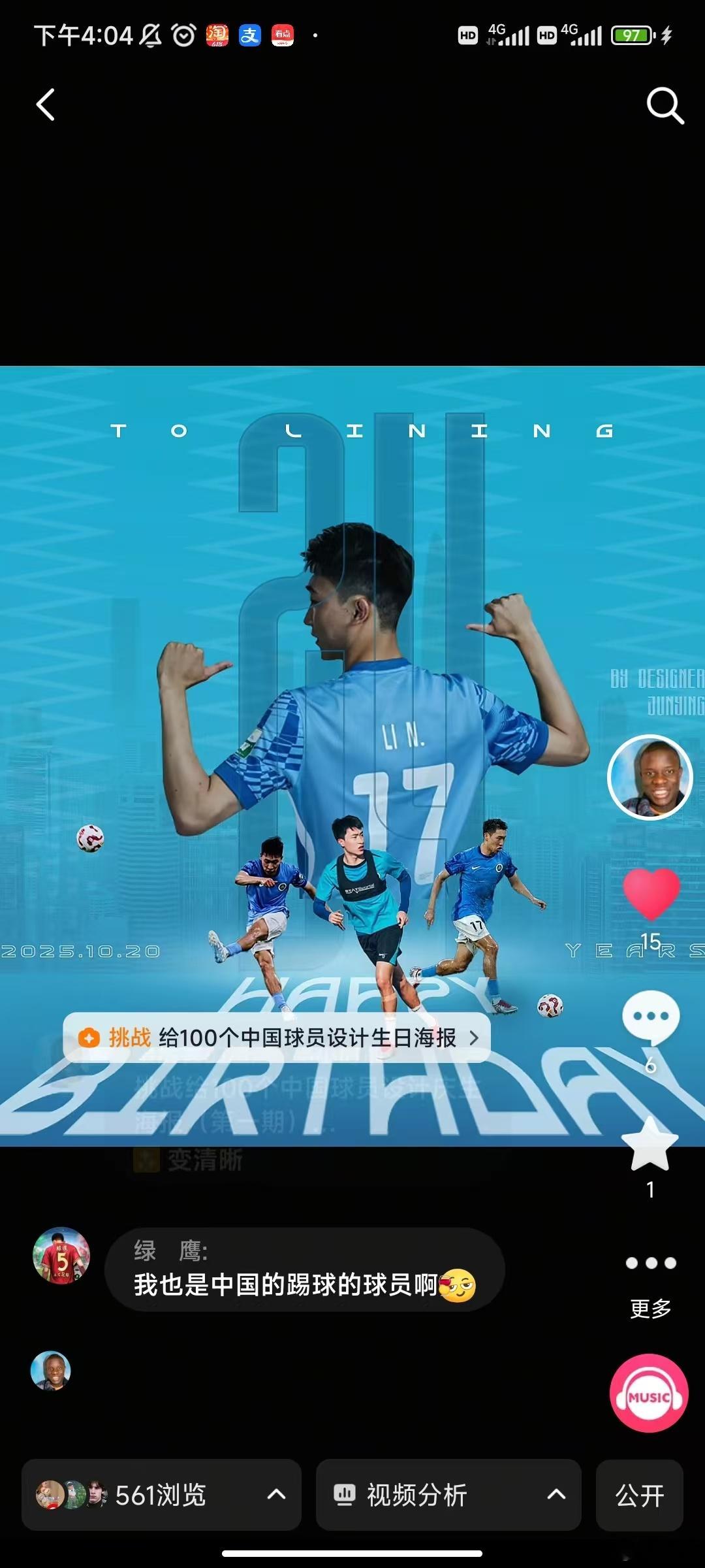 这是年轻帅气的设计师的新作品,他的目标是给100个中国球员设计生日海报!第一个从的李宁开始!加油[加油][加油][加油]