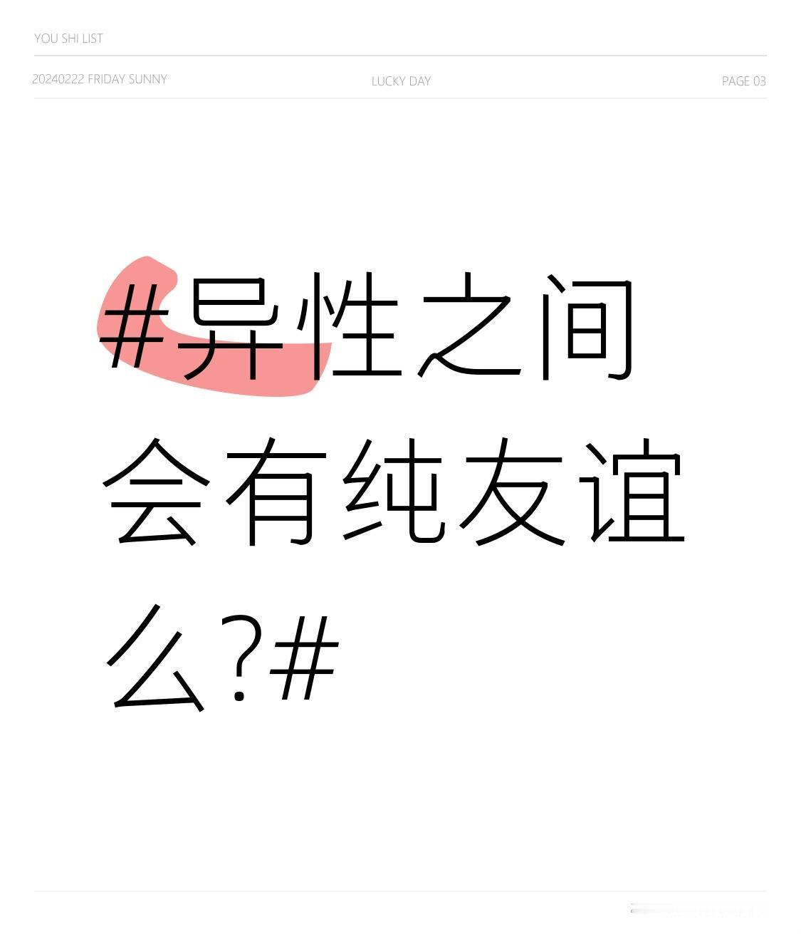 异性之间会有纯友谊么? 异性之间会有纯友谊么?这真是个争论不休的话题。有人觉得没有,毕竟“日久生情”的例子太多,就算开始是纯友谊,处久了也可能产生别样情愫。但我认为是有的。 纯粹的异性友谊建立在相互尊重理解上,源于思想、兴趣、价值观的契合。比如两人因都爱摄影而结缘,交流时能毫无保留分享观点,就算意见不同也能理性探讨。 从大数据看,各国异性友谊指数受女性职场参与率影响。在多数西方国家,异性朋友数量能占到同性友人的1/2及以上。所以,只要把握好度,异性间的纯友谊是存在的。