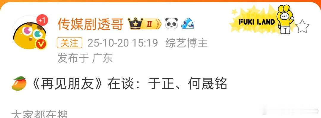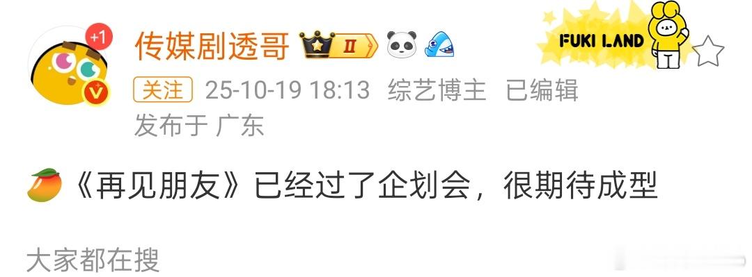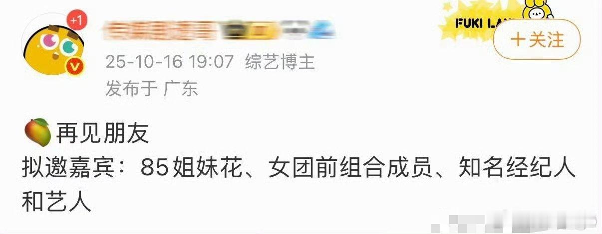 再见朋友拟邀嘉宾阵容:85姐妹花、女团前组合成员、知名经纪人和艺人稍等稍等,不会