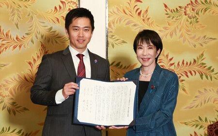 自民党总裁高市早苗与日本维新会代表(大阪府知事)吉村洋文于20日晚在国会内举行会