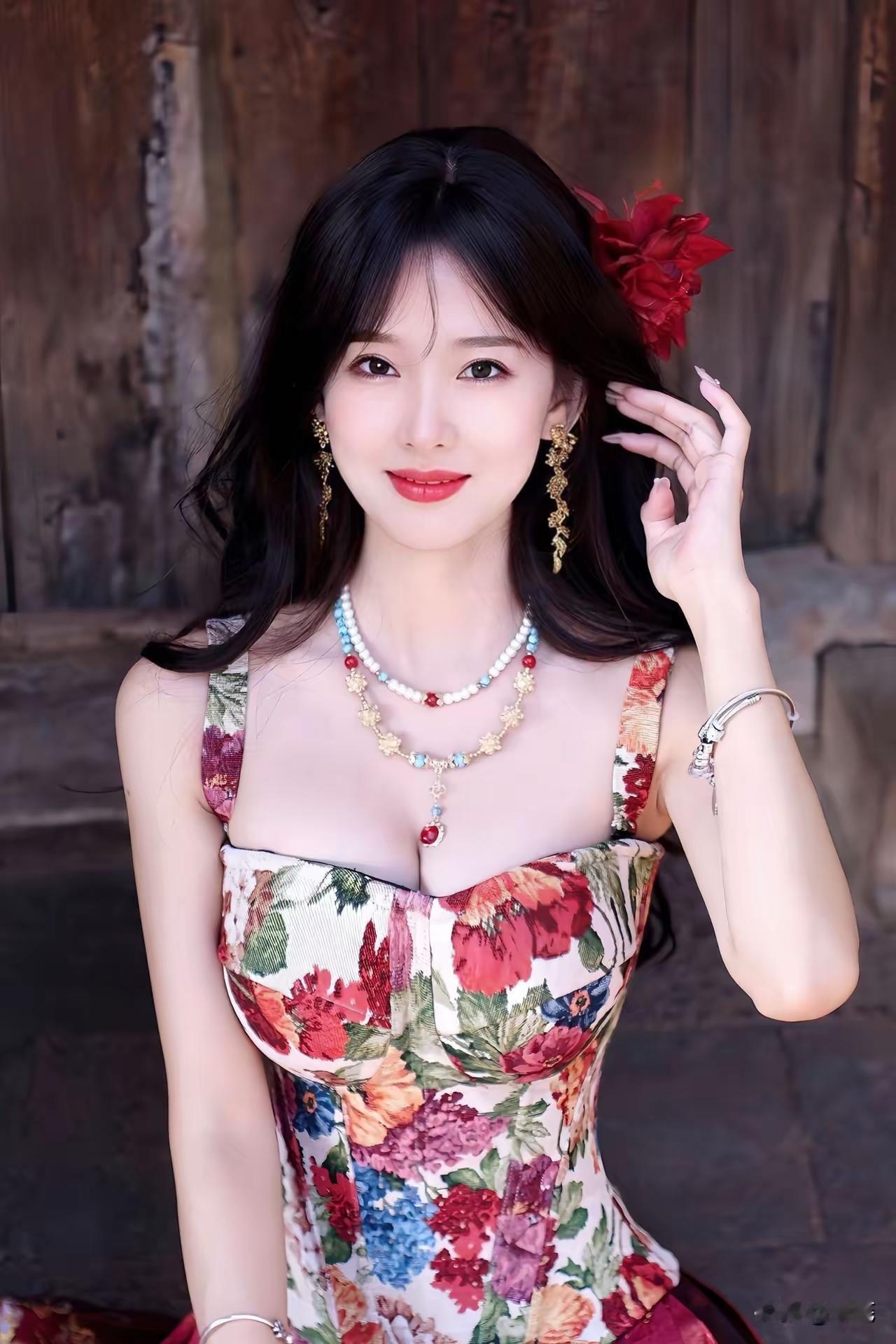 《乡村佳人》 袅袅花裙映碧丘,乡村佳影似仙游。 风拂裙摆香盈路,步绕田畴韵满眸。 笑对邻翁谈岁事,闲依老树赏溪流。 桃源若问栖身客,此女盈盈梦亦留。