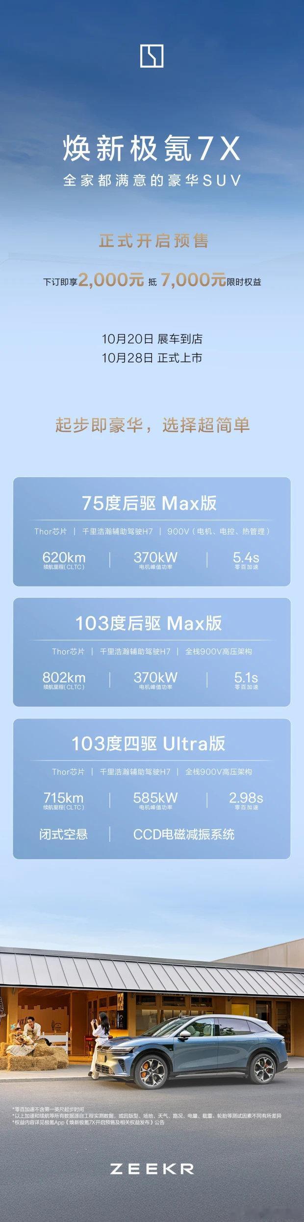 小改款的极氪焕新7X将在10月28日正式上市外观部分变化不太大但是能看到加入了智