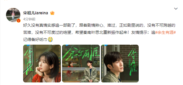宋祖儿宣传张彬彬毛晓彤新剧,是祖儿真情实感追余生有涯了,咱就说跟着祖儿一起带着纸巾追剧啦~