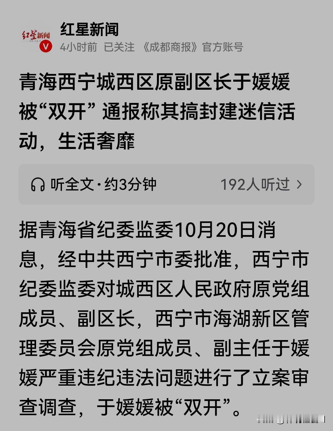 她——丧失理想信念,背弃初心使命,不信马列信鬼神,搞封建迷信活动,违规收受礼品、礼金、消费卡…… 以上这些我们都能理解,只是不知道生活奢靡是什么意思?莫不是整容太频繁或者是美容的次数过多,才用这个词语形容的。 希望端着“为人民服务”饭碗的人,不忘初心,牢记使命。更要有一种畏惧,那就是:莫伸手,伸手必被捉。国家有力量,人民有希望,给默默无闻打虎拍蝇的英雄们点赞!