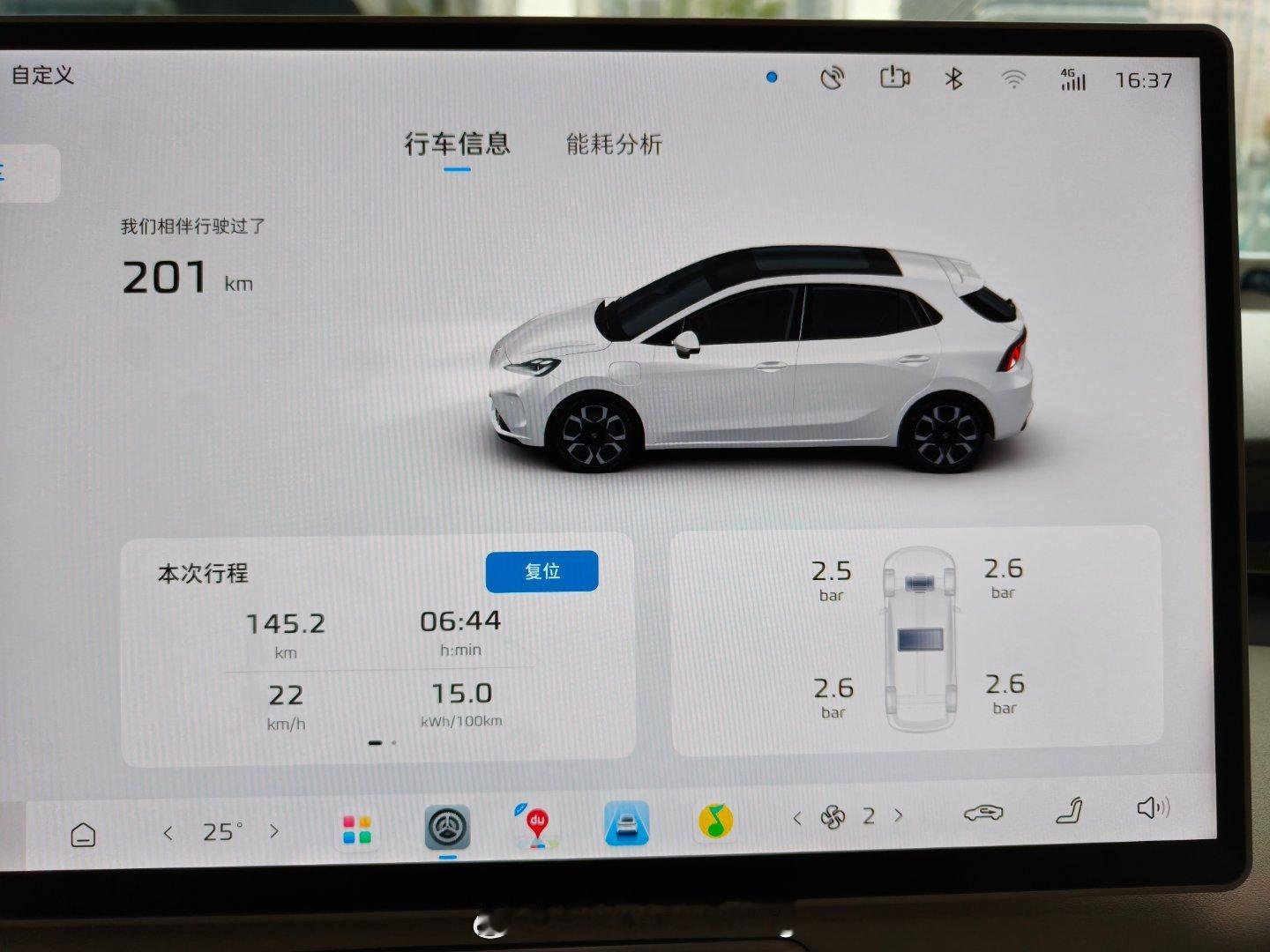 能耗如图:总里程145公里均速22km/h,其中有几十公里湿地/半湿地高速,120-130公里的时速在开,车上三个人而且上午都在下雨,总平均15.0kWh/百公里算是个高值,因为驾驶风格很激烈,一般人不会这样。算下来53.9度的电池能跑360多公里,放在9万元的级别算是不错。
