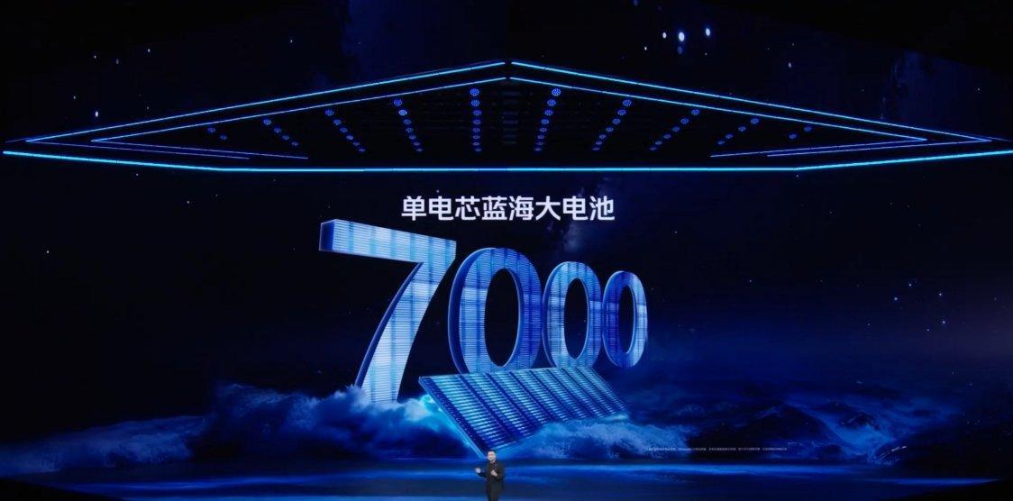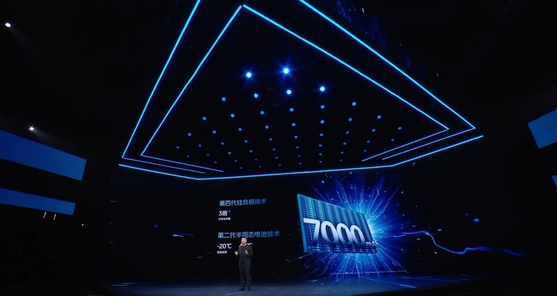 ①7000mAh单电芯蓝海电池,使用第四代硅负极技术和第二代半固态电池技术,