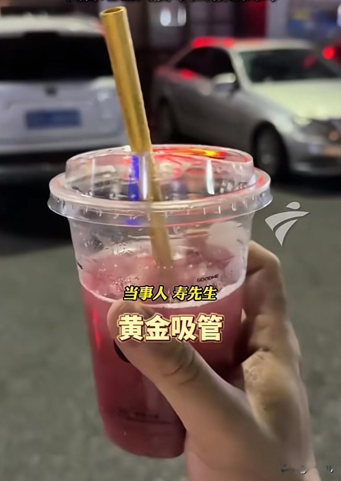 世界之大,无奇不有 浙江诸暨的寿先生把黄金打造成吸管用来喝奶茶,结果前两天这支