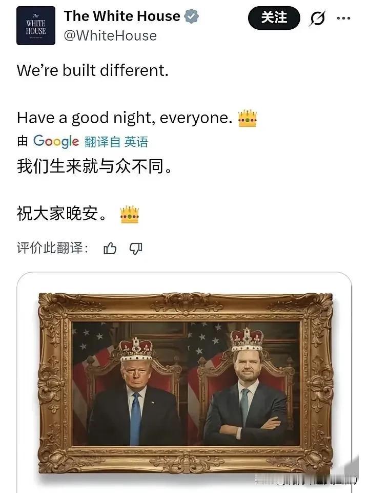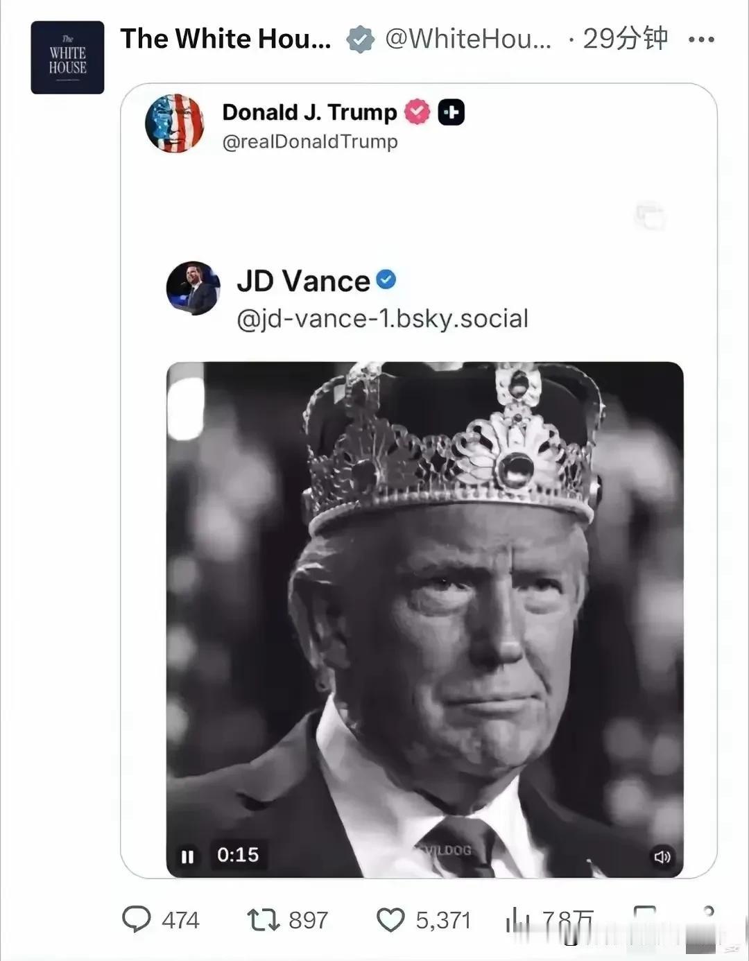万斯这手,活脱脱就是美国版的司马懿啊! 几百万人上街抗议老董,他不光不去帮忙灭火,反倒慢悠悠发了张老董戴皇冠的照片。就这一张图,瞬间把所有人的目光都拽了过来,老董直接被架在火上烤——这心计,没点城府还真玩不转。 说他研究过《三国演义》里的司马懿,真不是瞎猜。司马懿当年多能忍,多会借势?万斯这招,看似轻飘飘,实则往老董最敏感的地方捅了一刀。你想啊,“戴皇冠”这说法,往轻了说是调侃,往重了说就是暗讽“独断专行”,这不正好给抗议的人递了刀子? 老董身边啊,真是缺个能真心提点他的人。围着的要么是捧臭脚的,要么是各怀心思等着看笑话的。他自己还挺得意,觉得没人敢动他,殊不知人家早把套儿给准备好了。 这种时候,最忌讳的就是身边人“火上浇油”。万斯不直接下场,却用一张照片让矛盾更激化,这比直接批评厉害多了——既撇清了自己,又达到了目的,跟司马懿那种“借刀杀人”的路数,简直如出一辙。 说到底,混到那个位置,光靠硬来可不行。身边得有真朋友,还得能分清谁是真朋友。老董要是早点明白“防人之心不可无”,也不至于被人这么拿捏。 政治这盘棋,走得慢不如走得巧。万斯这一步,算是把“巧”字玩明白了。各位读者你们怎么看?欢迎在评论区讨论。