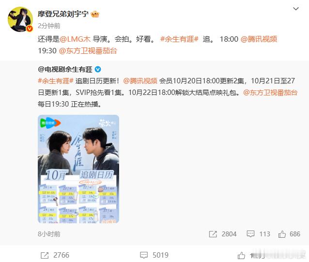 刘宇宁夸李木戈导演会拍刘宇宁宣传《余生有涯》。 刘宇宁夸李木戈导演!还得是李木戈导演导演。会拍。好看。余生有涯看起来!