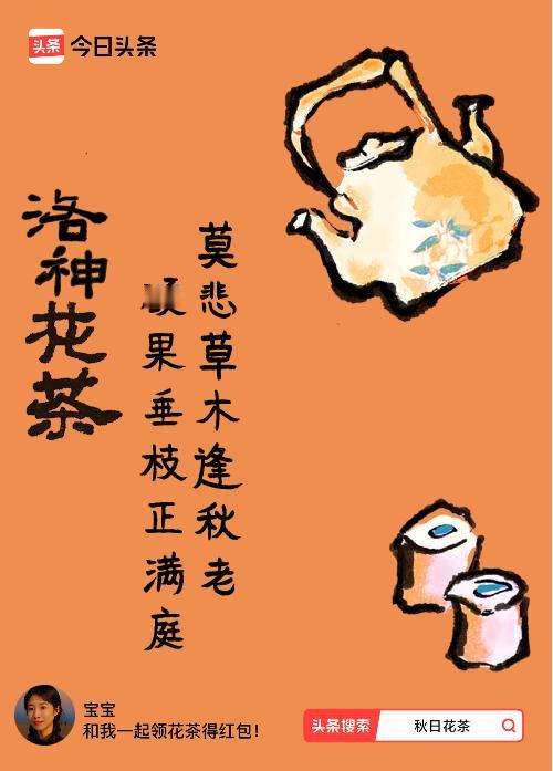 秋日领花茶我领到了秋日限定花茶:莫悲草木逢秋老,硕果垂枝正满庭,戳这里👉快来领取你的专属花茶,分2万元奖金!