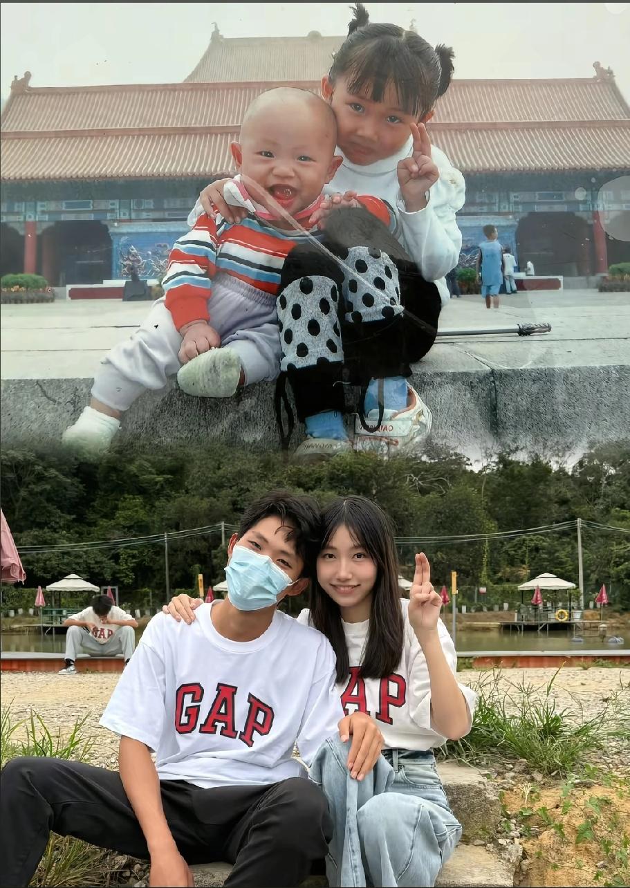 叶锐聪姐姐小时候有几个月大的弟弟陪伴,一点都不孤单,可是弟弟在自己的怀抱中被抢走,姐姐的心结隐藏了18年。 图片中, 姐姐和几个月大的弟弟一起拍摄了一张照片 ,弟弟依偎在姐姐的身边 ,非常的幸福和温馨的画面 ,而18年后的今天, 叶锐聪被找到了 ,他们又同样的姿势拍摄了 一张当下的照片 ,这回姐姐再也不用担心自己的父母为寻找孩子, 吃苦和受累了 ,弟弟的回归, 姐姐似乎忽略了二弟,网友调侃说 二弟怎么看起来像是多余的 ?
