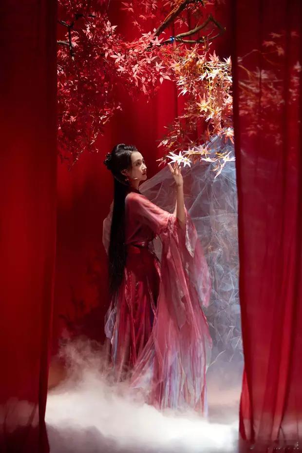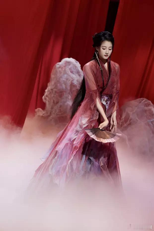 分享娱乐[超话]分享娱乐关晓彤一袭红衣执扇轻盈舞动,宛若画中美人妩媚明艳