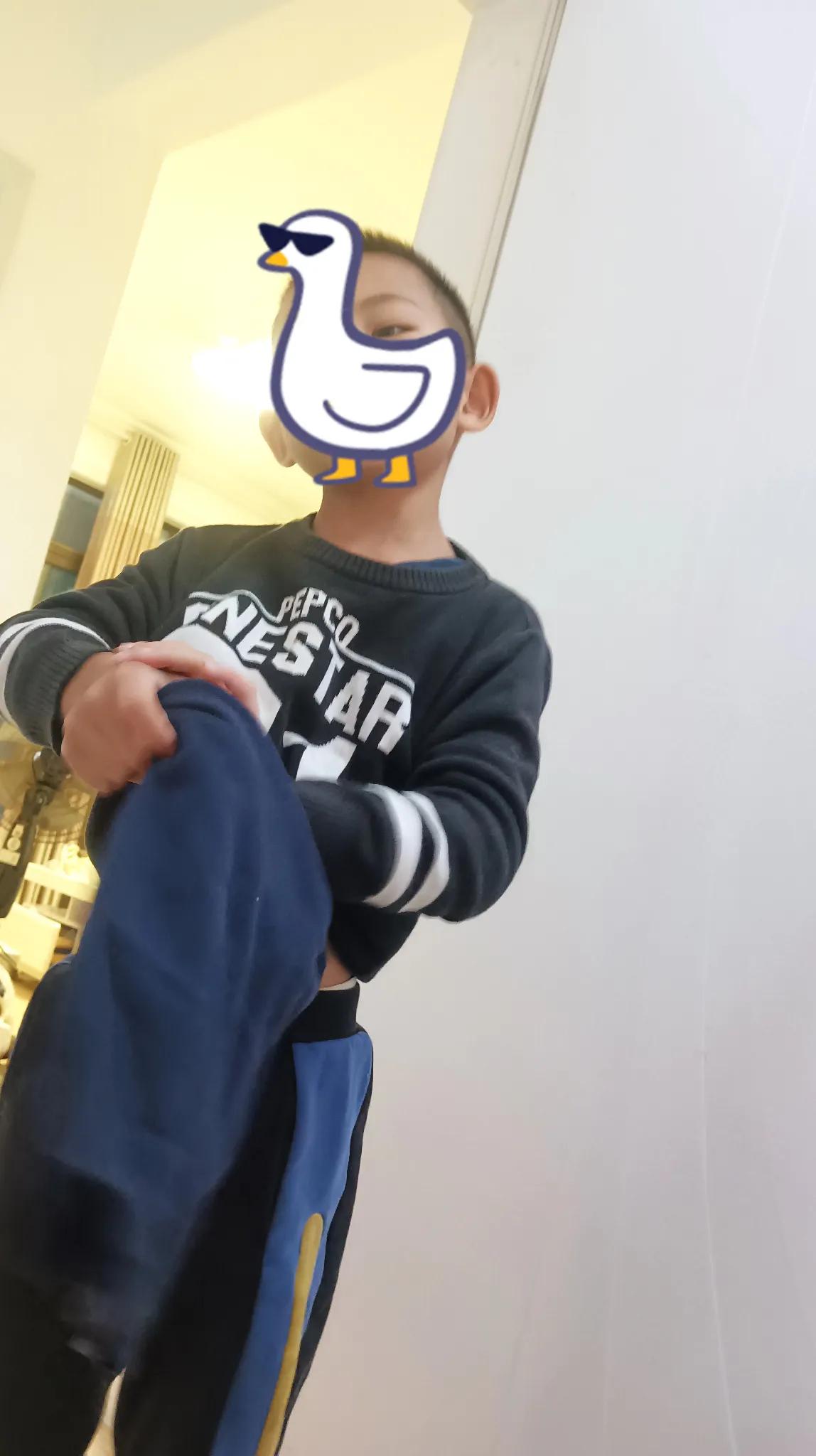 二宝又在我面前滔滔不绝。我看着他的黑毛衣,总感觉里面鼓鼓囊囊不对劲。 我就把手伸到他的衣服里,想看看里面到底穿的是啥? 结果这一伸手不当紧,感觉里面似乎有一团衣物。 我试着拽一下,扯下来老长,定睛一看,原来是昨天他穿那件蓝色秋衣。 这秋衣自成一派,压根没穿身上,只有两边的袖子塞在毛衣胳膊里。 噢,想起来了! 早上一直找不到那件秋衣,我就又找了一件白色的给他。 应该是他昨晚脱毛衣的时候连秋衣一块脱了,早上穿的时候却没钻进正确的口。 “你这搞的啥?”我边说边狂笑。 他也笑,边笑边弯腰用力往外拉,我半酸的手费了老半天才把那秋衣扯下来。 哎妈呀,差点笑岔气!