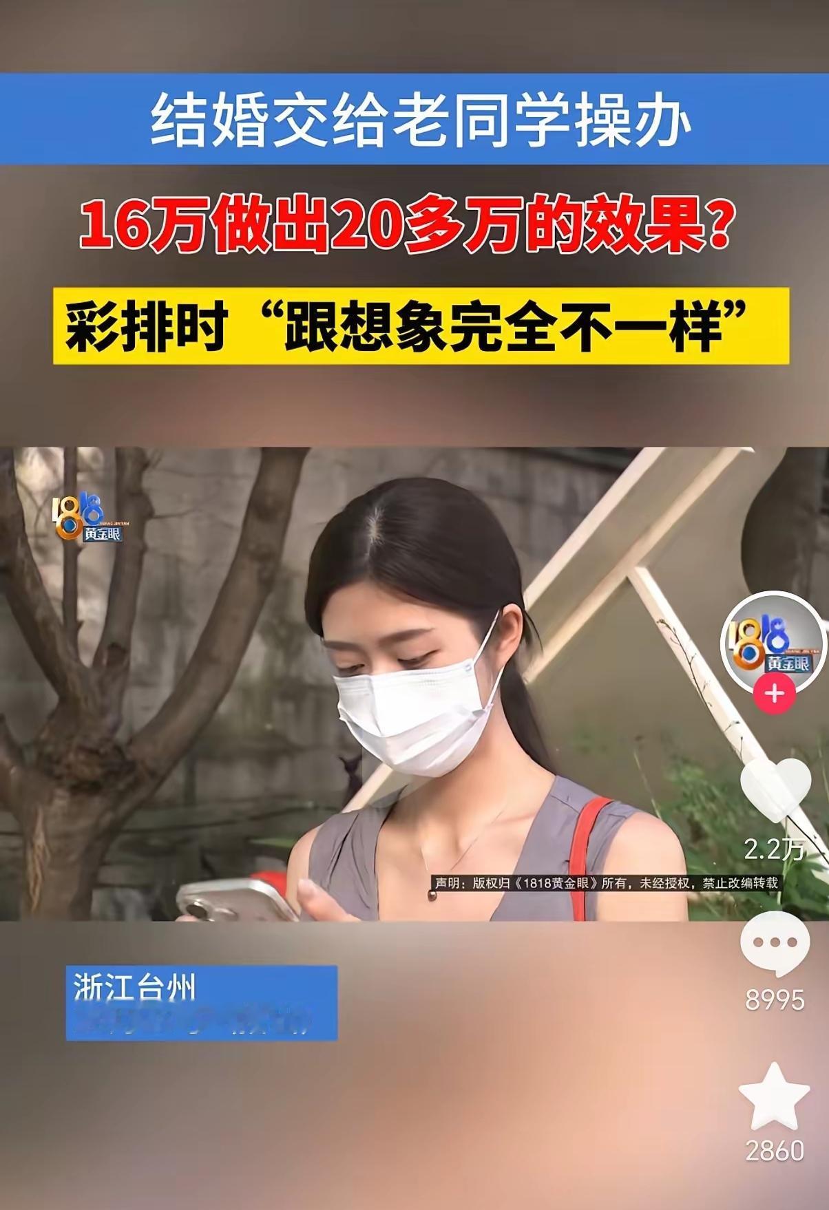 “被熟人杀猪!”浙江台州,女子花16万找老同学操办婚庆,老同学承诺16万做出20