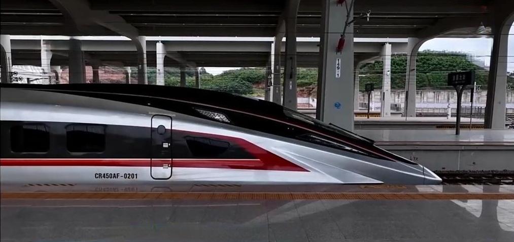 【中国速度:全球最快动车组CR450正在沪渝蓉高铁开展运用考核,单列时速已创453公里最新纪录】 中国速度又一次惊艳世界!CR450动车组样车已完成多项试验,跑出单列时速453公里、相对交会时速896公里的新纪录。目前它正在沪渝蓉高铁开展运用考核,要跑够60万公里且指标合格才能载客运营。 研发人员很厉害,让它阻力减小22%,从起步到时速350公里仅需4分40秒。“十三五”末我国高铁就以时速350公里成世界高铁商业运营速度标杆,现在还不断突破。2021年CR450科技创新工程启动,如今成果显著。预计明年在成渝中线还会有更接近运营条件的全面测试,未来出行肯定更便捷,太期待了。 世界对中国高铁的评价那可是相当高。自2008年京津城际铁路开通,中国迈入高铁时代,如今已建成全球规模最大、现代化水平最高的高铁网,营业总里程达4.8万公里,占世界高铁总里程70%以上。 在第十二届世界高速铁路大会上,来自60多个国家和地区的嘉宾齐聚,共赞中国高铁发展。就连马斯克也直言中国高铁超棒,吐槽美国铁路“太糟糕”。美铁亏损严重,技术陈旧,轨道脆弱常致晚点。而中国高铁技术完备,覆盖工程建设、装备制造等各领域。不得不说,中国高铁就是牛!