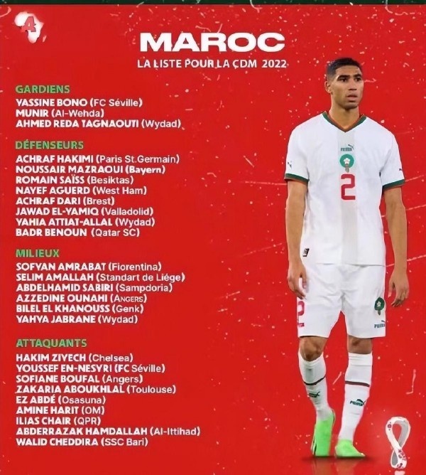 那支摩洛哥阵中有2人来自法国、4个出生在比利时,还有好几个荷兰足球青训体系培养的人才。26人大名单里,有14人出生在海外,也让摩洛哥一度被质疑会凝聚力不足。